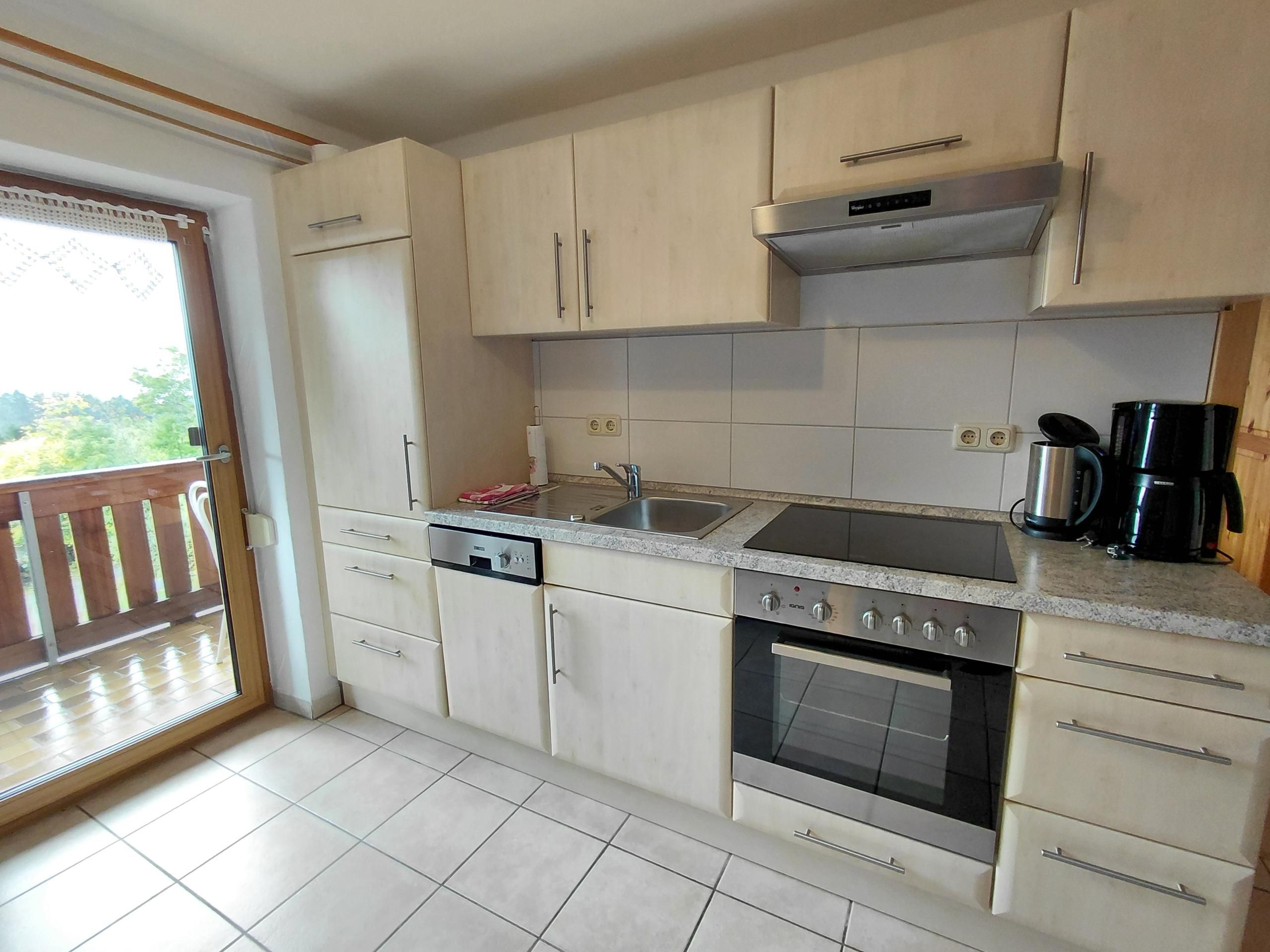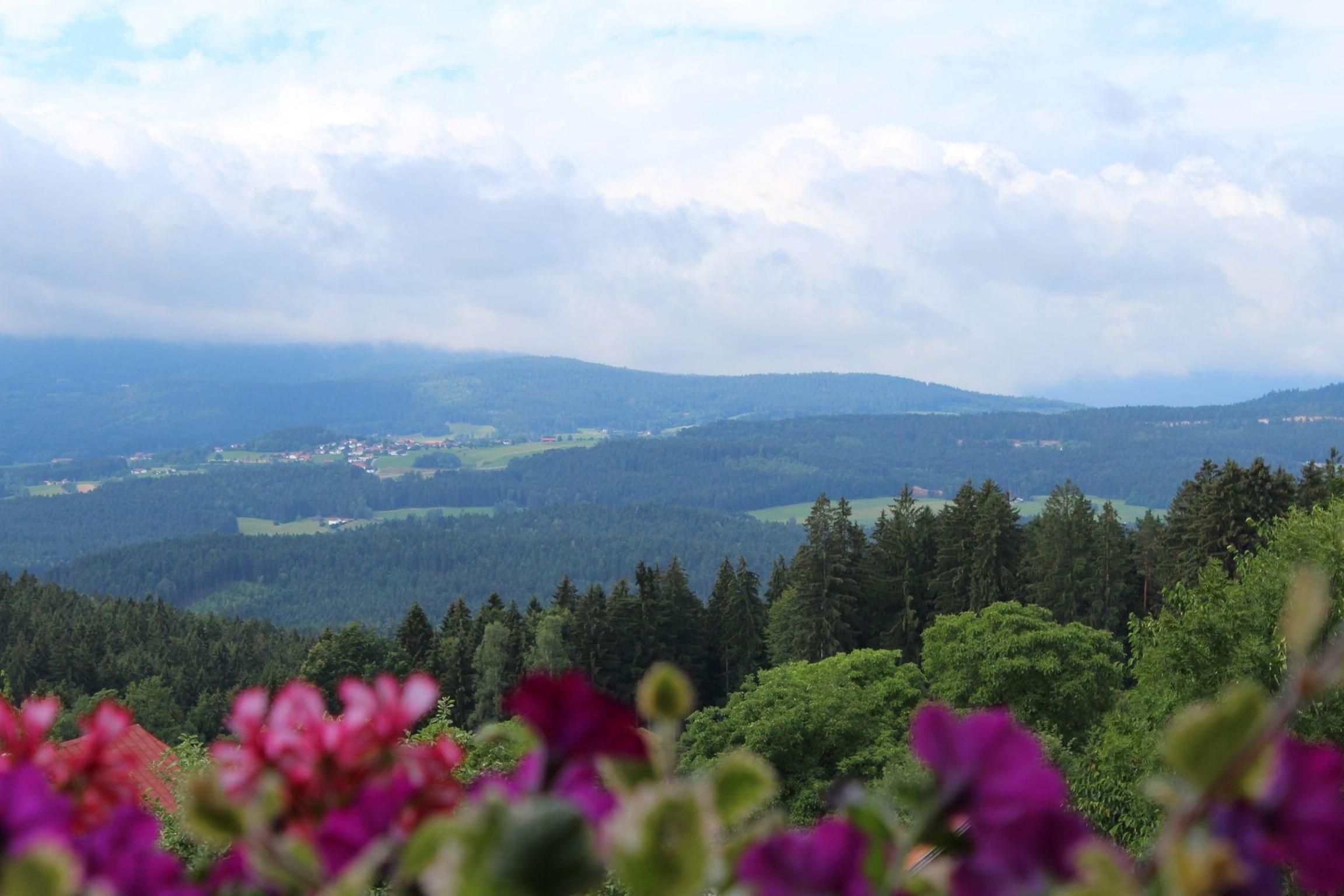 Vom Balkon blickt man Bayerwaldpanorama mit seinen sanften Wald- und Bergwogen.