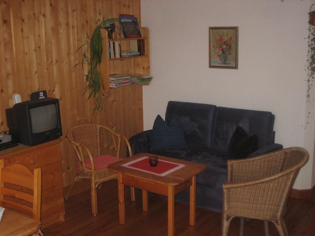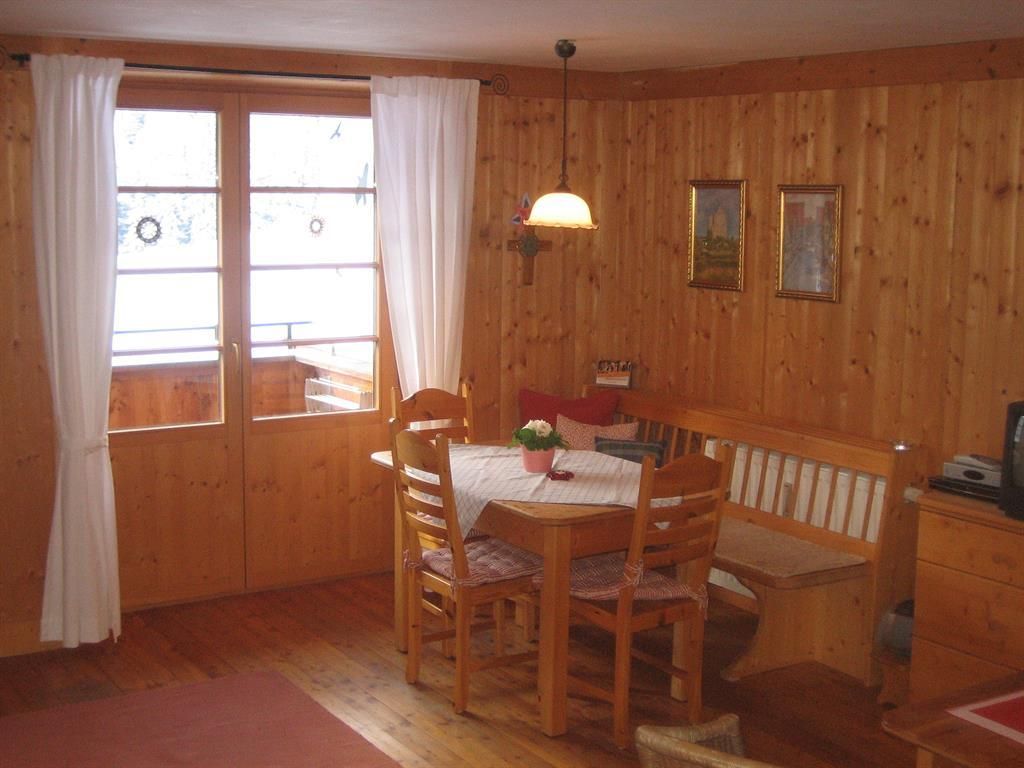 Unsere Wohnung Muntanitz liegt im Obergeschoss mit großem Balkon und gemütlicher Einrichtung aus Naturbaustoffen.