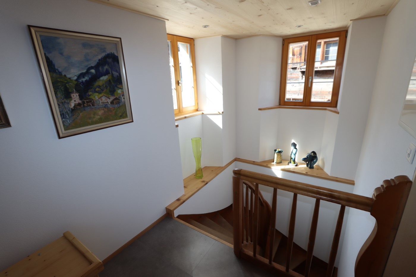 2020/2021 mit viel Holz renovierte Ferienwohnung mit Blick in die Berge für 1-2 Personen im oberen Dorfteil von Jenaz (5 Gehminuten vom Bahnhof). Das Haus wurde 1575 erbaut und war ursprünglich Pfarr- und Schulhaus. Aufwändig renoviert, bietet es heute angenehmen Wohnkomfort mit vielen Details aus vergangenen Zeiten.
