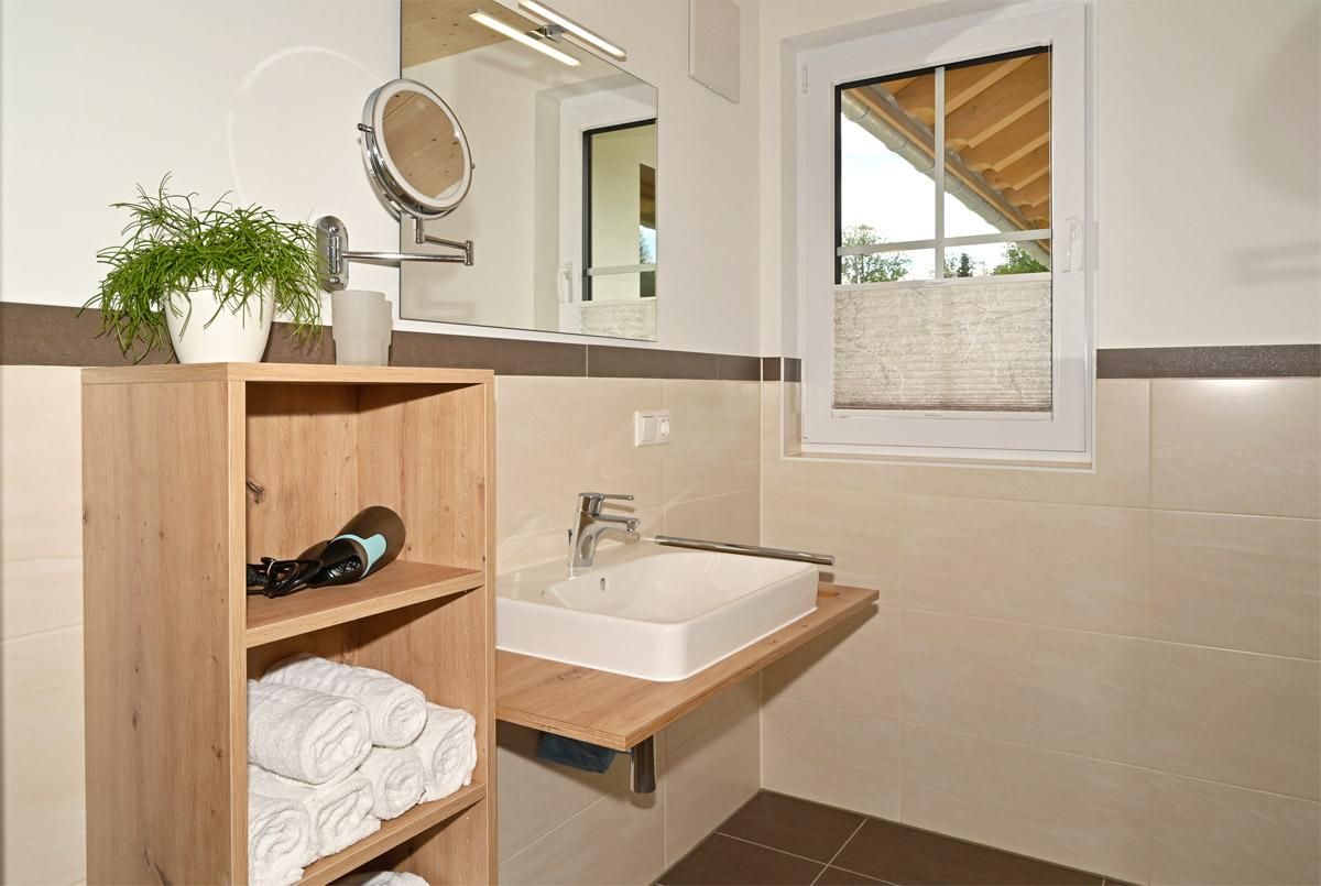 Das Badezimmer ist mit Tageslicht durchflutet und bietet Ihnen eine helle und freundliche Atmosphäre für einen perfekten Start in den Tag.