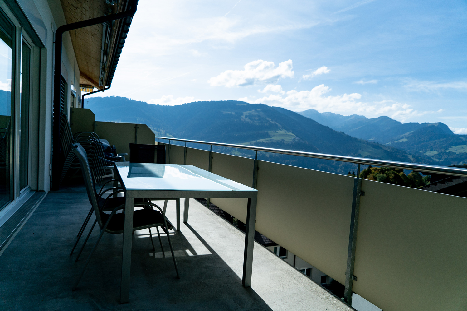 Helle und grosszügige 5 1/2-Zimmer Ferienwohnung auf 4. und 5. Etage mit Liftanschluss in modernem Neubau. Grosser Balkon mit wunderschönem Ausblick. Mitten im Grünen und dennoch nur vier Auto-Minuten von Seewis Dorf entfernt.