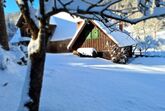Diese liebevoll eingerichtete Hütte bietet auf 50 m² den perfekten Rückzugsort für zwei Erwachsene – ideal für Paare, die Ruhe und Natur genießen möchten. Im offenen Wohn-Schlafbereich mit Doppelbett sorgt der traditionelle Holzofen für eine behagliche Atmosphäre. Auf Anfrage können zusätzlich zwei Kinder auf der Schlafcouch untergebracht werden.