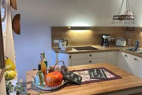 Im Inneren erwartet Sie ein geschmackvoll eingerichteter Wohnraum, der mit einem Smart TV inklusive Netflix und WLAN für Unterhaltung an trüben Tagen sorgt. Ein Highlight der Ferienwohnung ist das luxuriöse Badezimmer, welches mit einer freistehenden Bronzebadewanne und einer großzügigen Dusche keine Wünsche offenlässt. Die voll ausgestattete Küche lädt zum gemeinsamen Kochen und Backen ein, während das Schlafzimmer mit seiner sorgfältigen Einrichtung für ruhige Nächte sorgt. Zudem steht Ihnen eine Waschmaschine und ein Wäschetrockner zur alleinigen Nutzung bereit, was einen langfristigen Aufenthalt noch angenehmer macht.