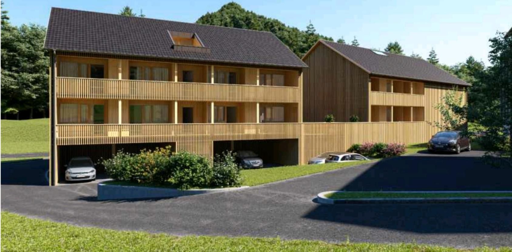 Vier stilvolle Apartments à 32 m² mit durchdachter Raumaufteilung – ideal für bis zu 3 Erwachsene oder 2 Erwachsene mit 2 Kindern. Ruhige Lage, Bergblick und ein natürliches Wohnambiente sorgen für Wohlfühlmomente.