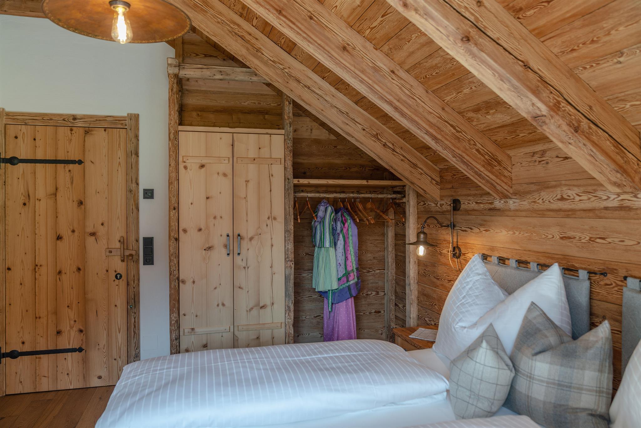 - Traditionelle Holzstiege als Verbindung in das urige Obergeschoss mit heimeliger Holzdachschräge
