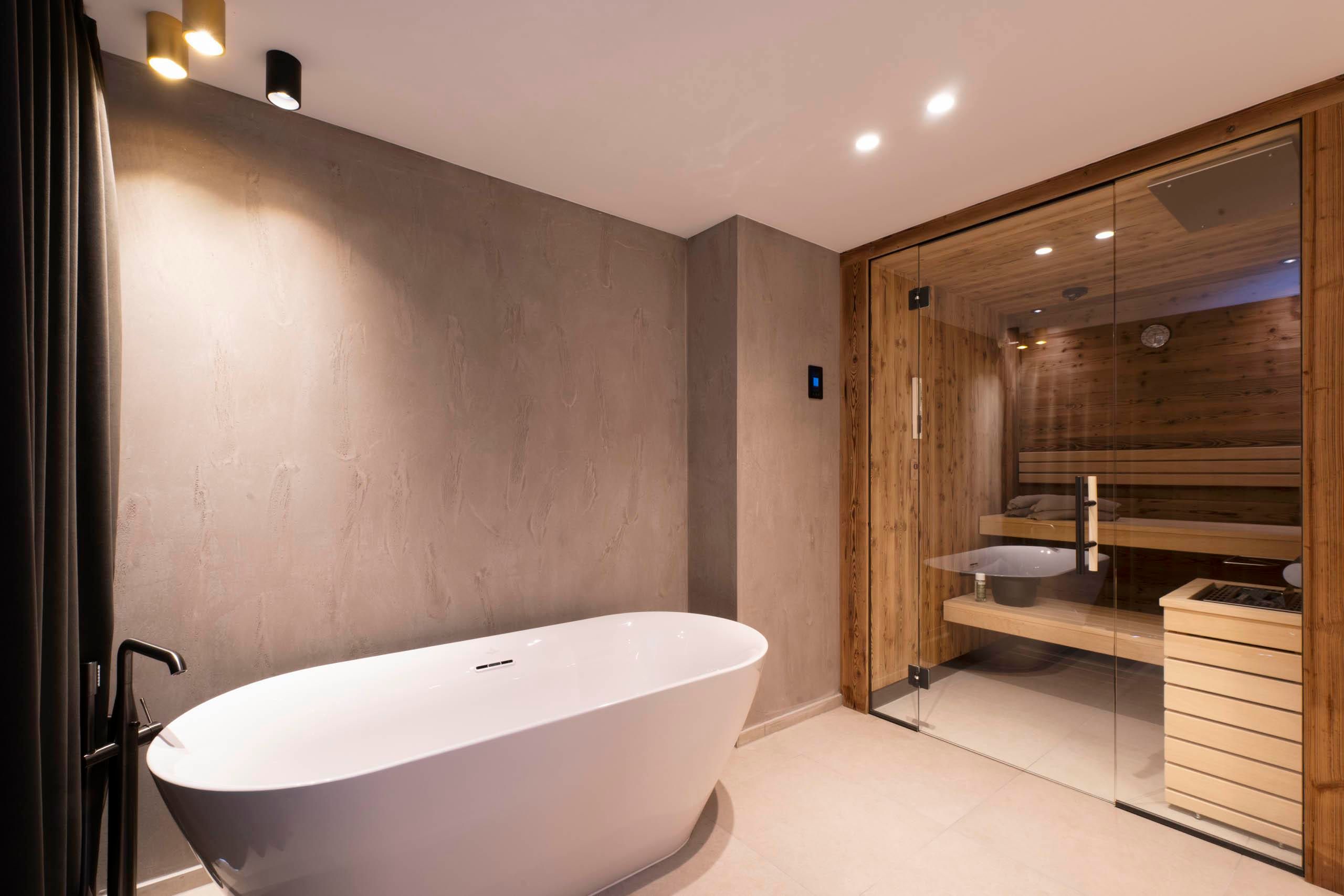 Das ideale Apartment mit 2 getrennten Badezimmern und großzügigem Wohnraum inkl. Küche. Private-SPA mit Panoramabadewanne und Sauna machen es zum Premium Apartment.