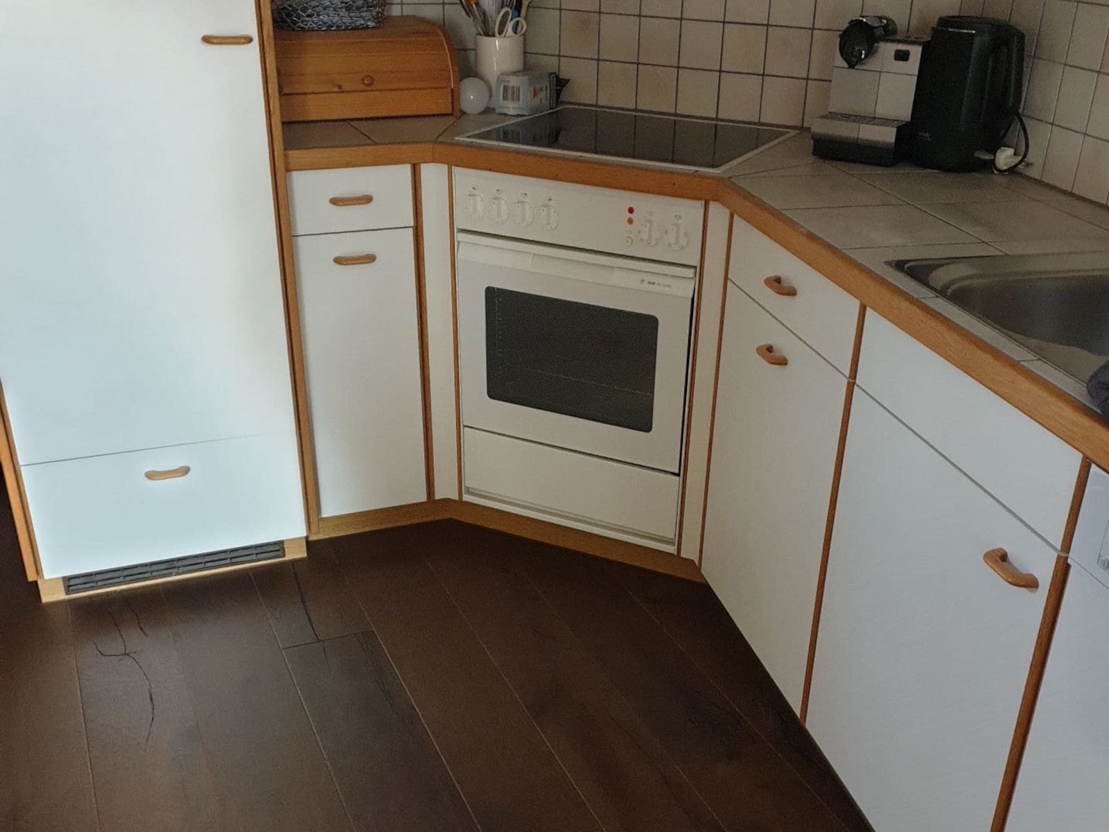 Die Küche ist komplett ausgestattet und verfügt über einen Kocher, Backofen, grosser Kühlschrank mit Gefrierfach, Geschirrspühlmaschine, Nespresso Kaffeemaschine (verbrauchte Kapseln müssen vom Mieter nachgelegt werden), einem klassichen Raclette-Gerät sowie eine Raclette-Tepanjaki-Kombination und ein Fondue Caquelon.