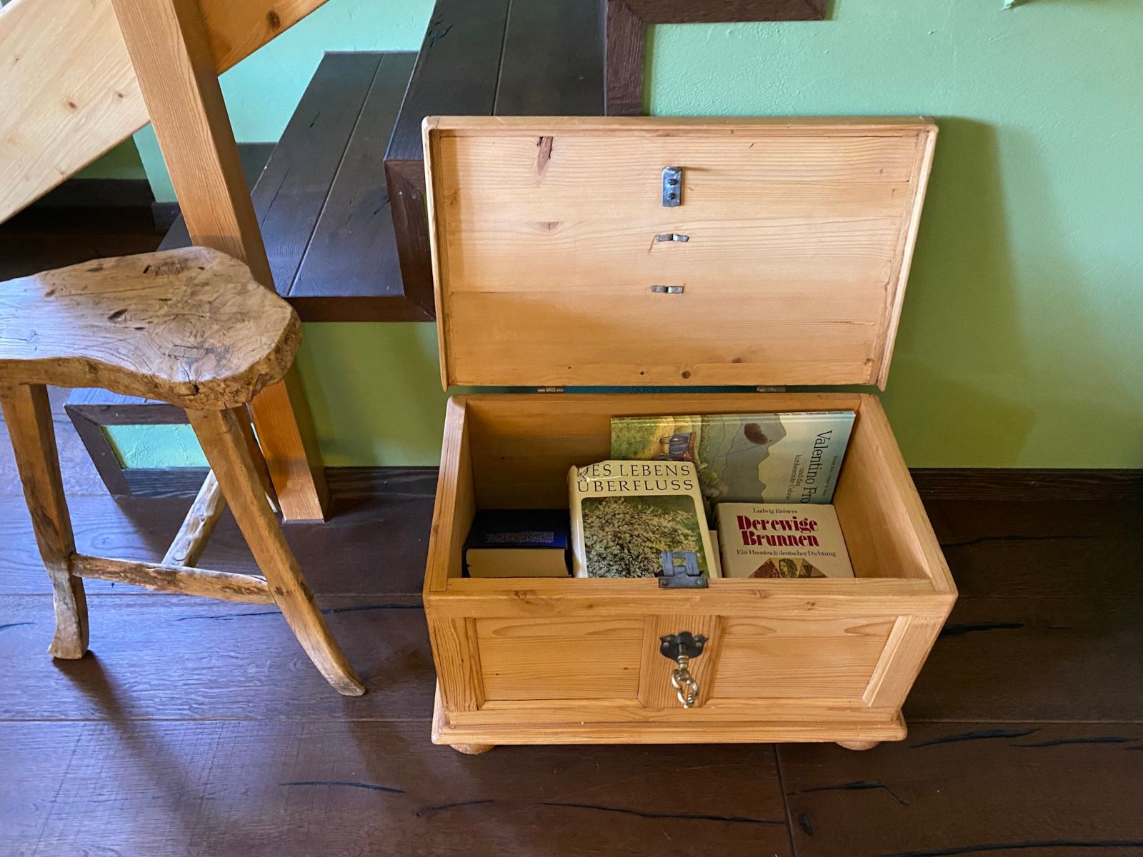 Ein offener Wohnraum mit Küchen-/Essbereich. Im Wohnzimmer befindet sich ein offener Kamin (verbrauchtes Holz muss vom Mieter nachgelegt werden), Esstisch, Eckbank und vier Stühle, zwei Sessel, Flatscreen-TV mit Sattelitenempfang, Bose Wave Stereoanlage und grossem Balkon. WLAN in der ganzen Wohnung (Kostenlos) ein Flatscreen TV im Wohnzimmer mit Sattelitenanschluss sowie ein zweiter Loewe-Bildschirm welcher über vom Mieter mitgebrachte Streaminggeräte (mit Kabeln!), wie z.B. Apple TV, Kameras, Massenspeichermedien etc. genutzt werden kann. Die Wohnung verfügt über eine gemütliche Lesecke im zweiten Stock mit einer kleinen Auswahl an Büchern. Ebenfalls bietet die Wohnung diverse CDs, besonders Klassik. Diese können in der Bose-Anlage gespielt werden, die ebenfalls einen AUX-Anschluss für eigene Medienträger hat, z.B. Smartphones.