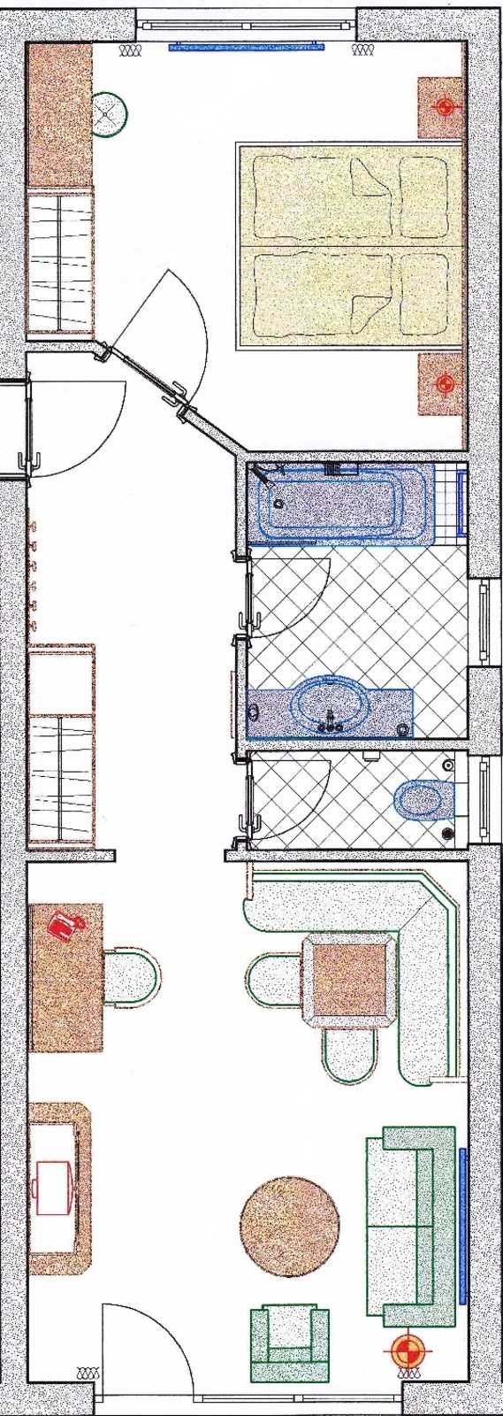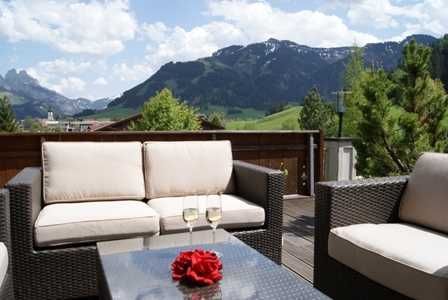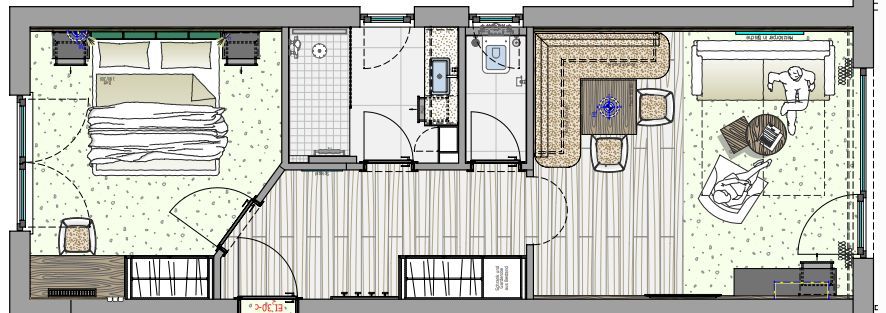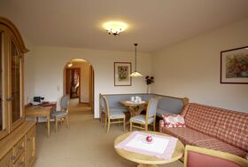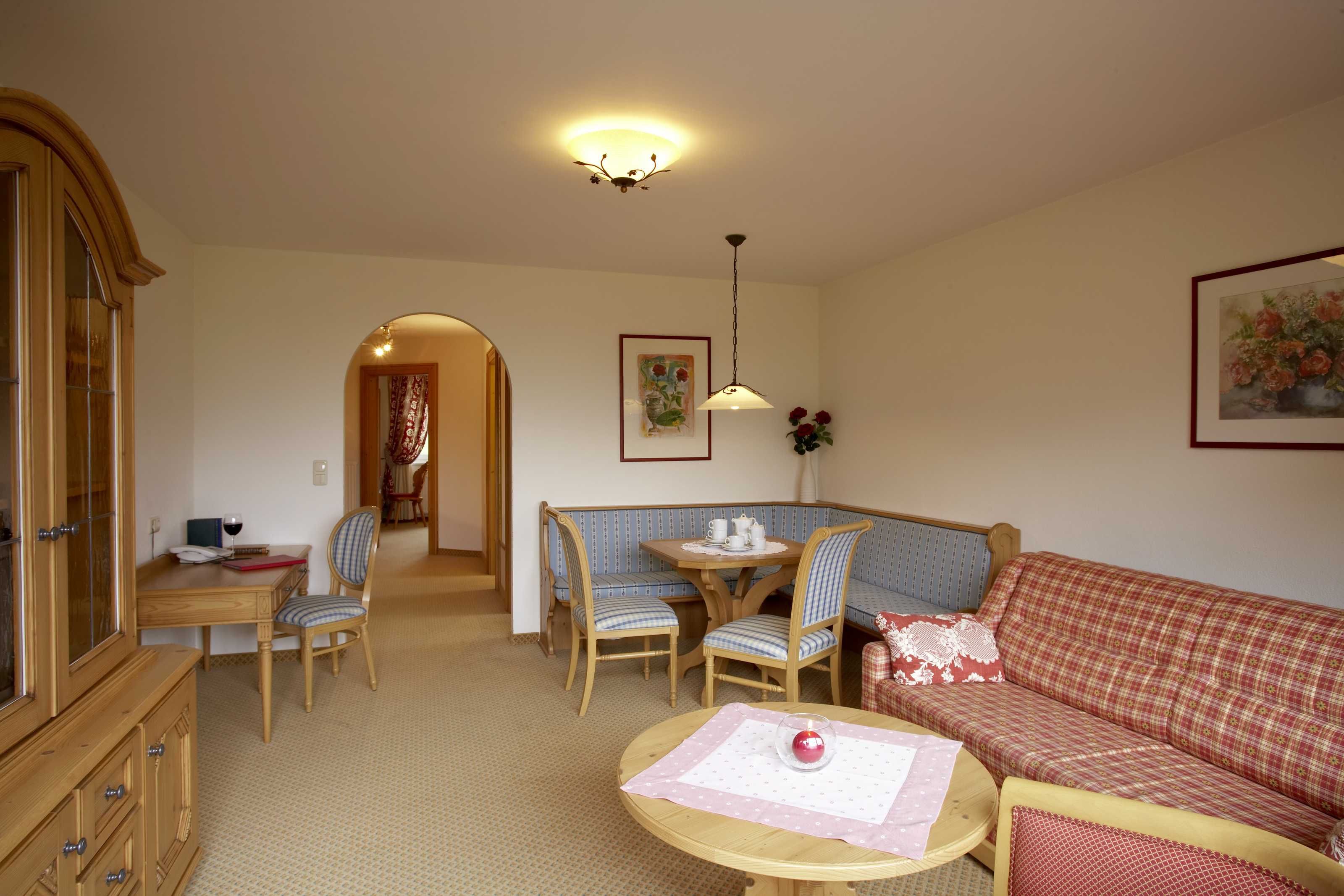 Suite Edelweiß mit ca. 47 qm mit getrenntem Wohn-, Schlafbereich und ausziehbarer Couch.