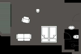 Kabel-TV, WLAN, Safe, Haarföhn, Kosmetikspiegel und eine Sitzecke mit