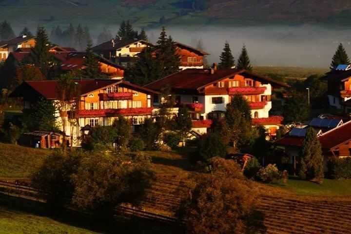 Der erste Eindruck überzeugt: der Ort, die Panoramalage, der herzliche Empfang. Komfortable Wohnkultur im Landhausstil, gemütliche Hausbar. Direkt an der Loipe, Radweg und Mountainbikestrecke, ruhige Lage.