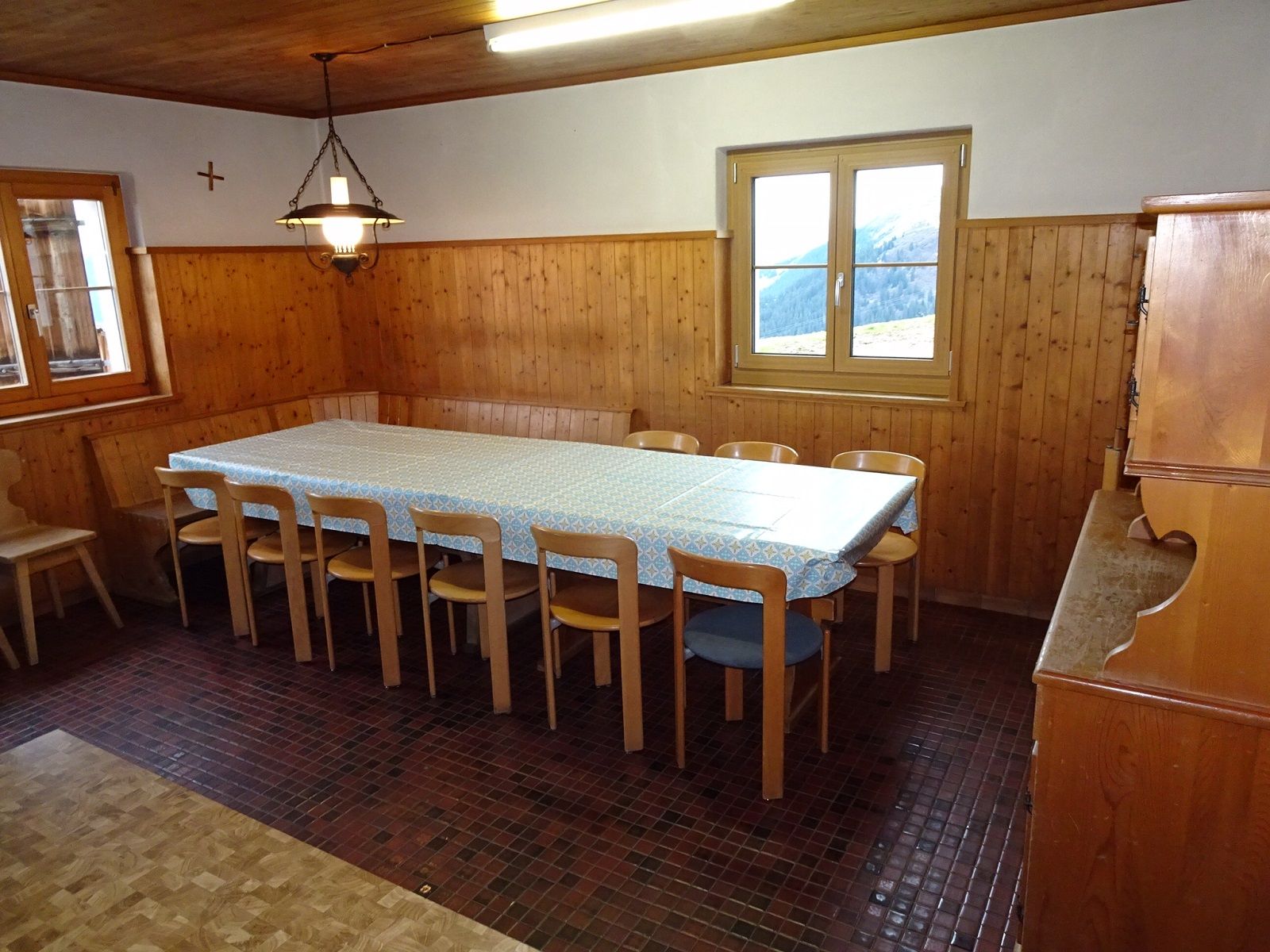 Separate Küche, Abstellraum. Es steht genügend Fonduegeschirr zur Verfügung. Badezimmer: