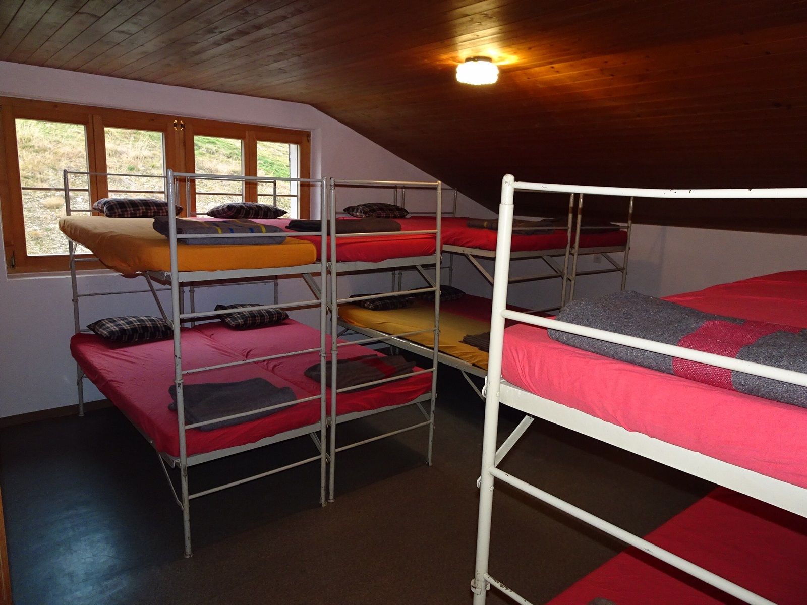 1x 3-Bettzimmer mit Etagenenbetten, 1x 4-Bettzimmer mit Etagenbetten sowie 1x 8-Bettzimmer mit Etagenbetten. Wohnzimmer: