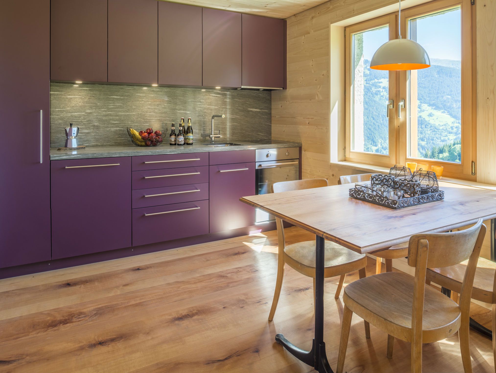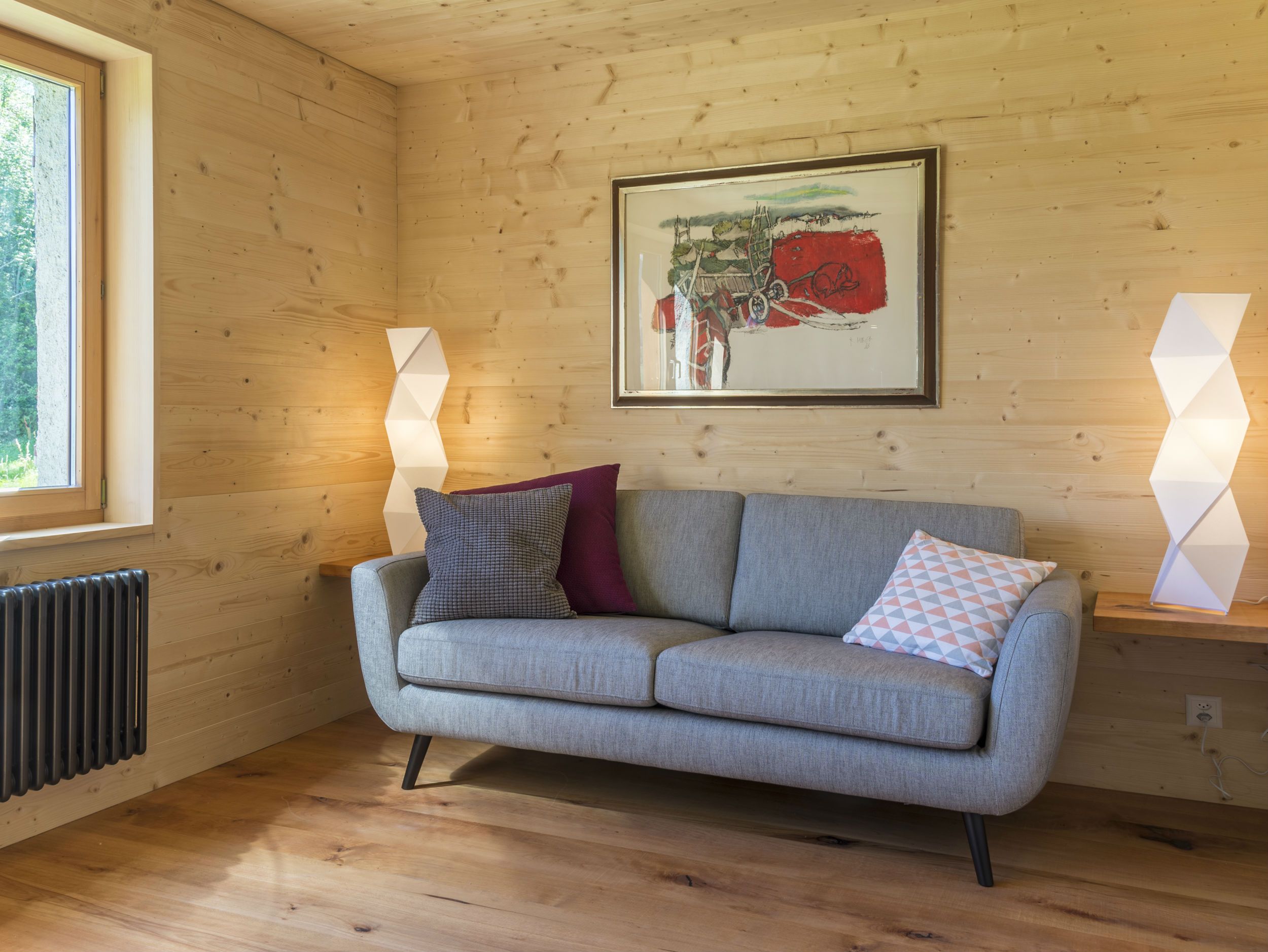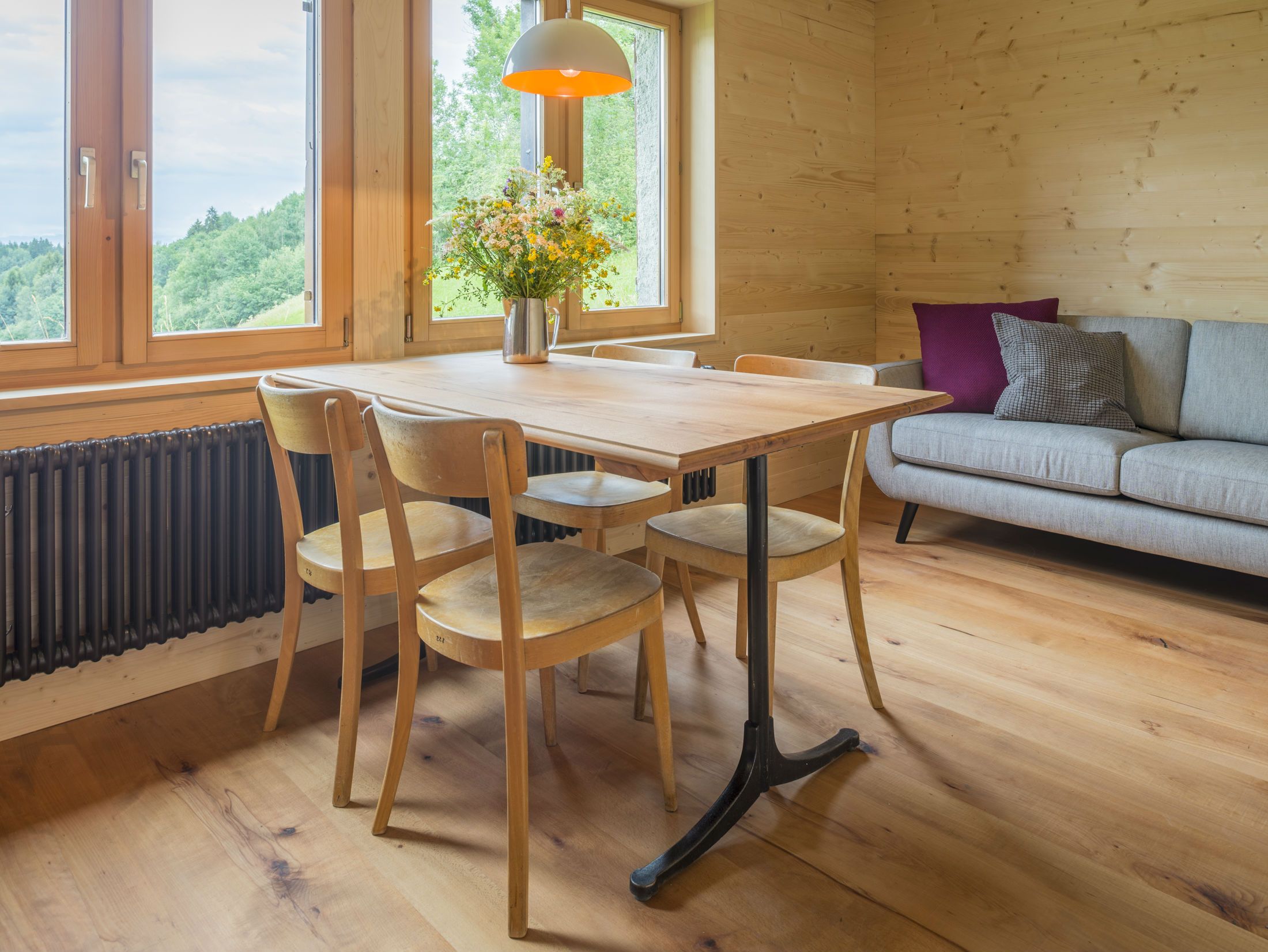 Für den Fussboden und die Möbel wurde massives Buchenholz verwendet. Türen, Wände und Decken aus passender Weisstanne. Andere Räume: