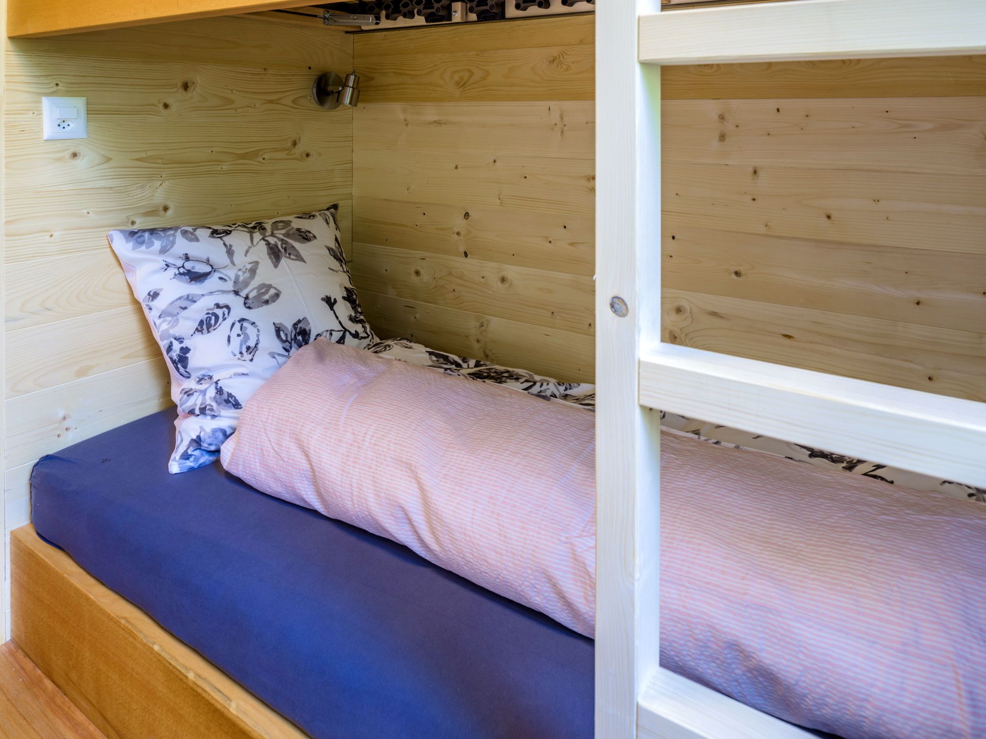 2 Schlafzimmer: Ein Elternschlafzimmer mit Doppelbett (180x200cm) und ein separates Kinderzimmer mit Etagenbett (2x 90x200cm). Bettwäsche vorhanden und im Preis inbegriffen. Wohnzimmer: