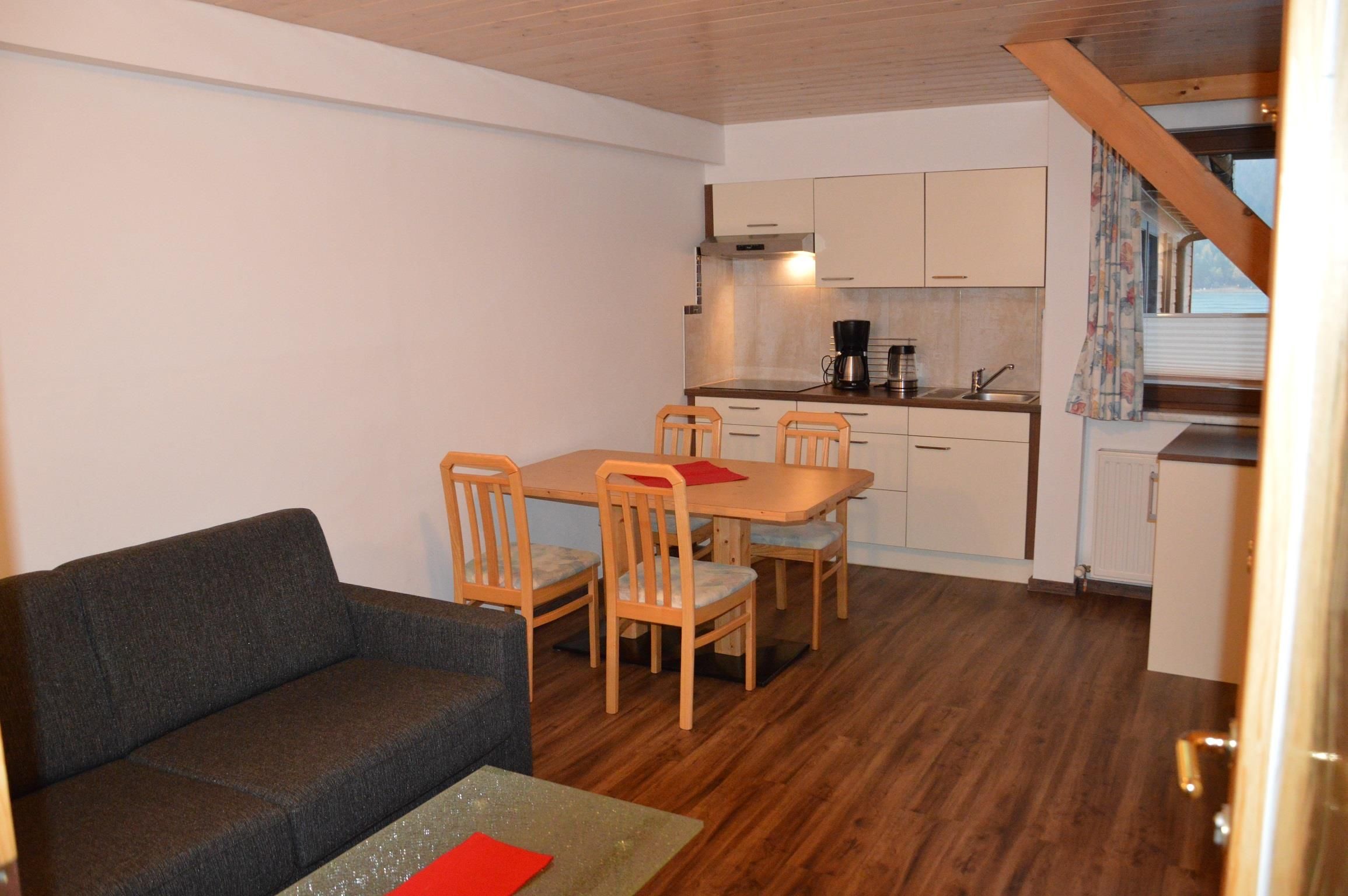 Appartement für 2-4 Personen mit 1 Schlafzimmern, Dusche / WC getrennt, Föhn, Handtücher / Bettwäsche, Schampoo & Duschgel,Sat-TV, Radiowecker, Tresor, Wohn-Küche, schöner Balkon mit Blick über den Weissensee...