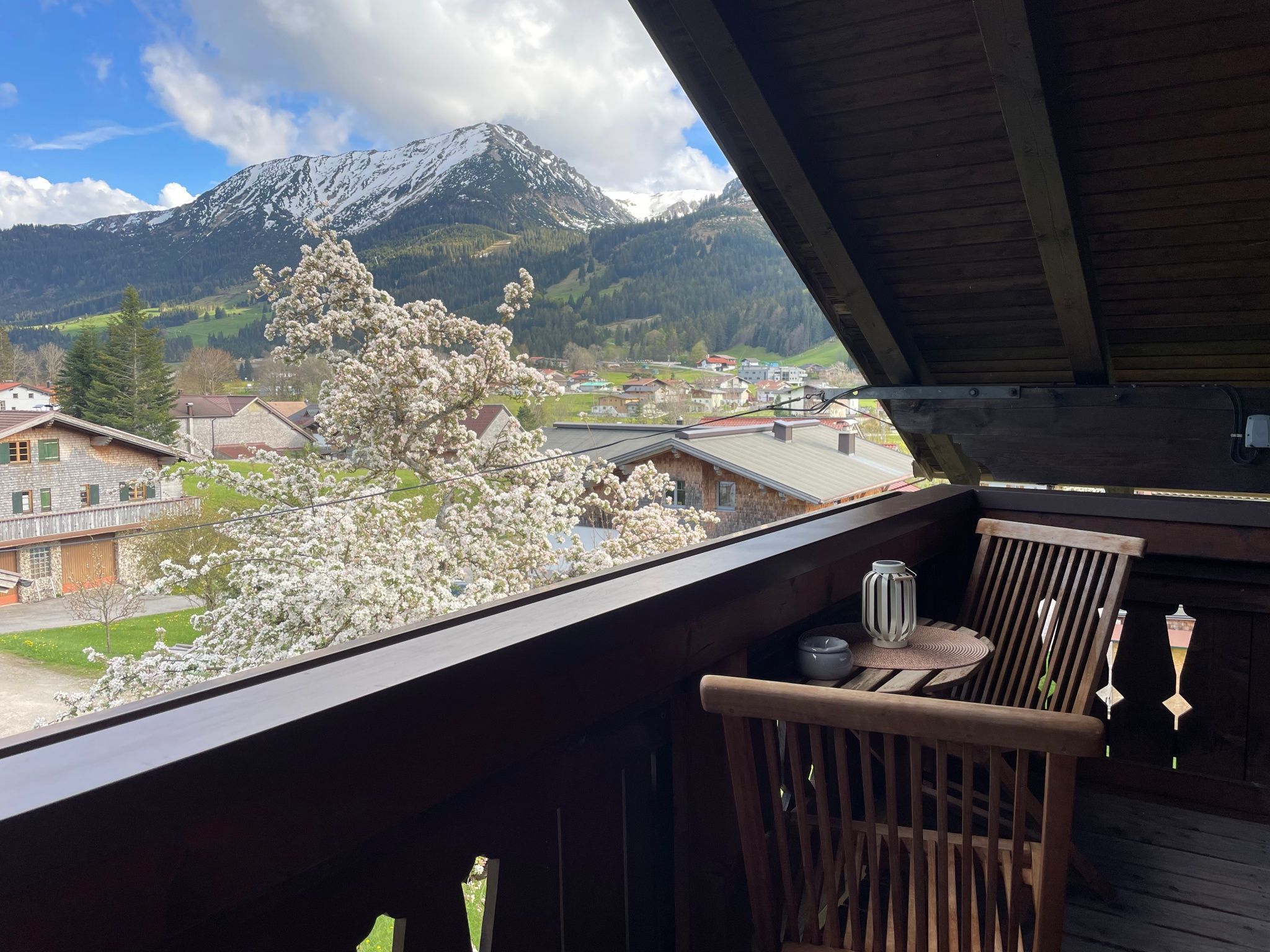 In unserer Ferienwohnung Eins, mit Zugang zum Ostbalkon im zweiten Stock, erwartet Euch eine gemütliche Atmosphäre im Tiroler Landhaus Stil. Die Ferienwohnung verfügt über ein Schlafzimmer mit Doppelbett, en Suite Waschbecken und einer weiteren Schlafmöglichkeit für Kinder (75cm*1,90m). Das WC mit Dusche ist vom Schlafzimmer aus erreichbar. Im Wohn- und Essbereich könnt Ihr euch mit einer voll ausgestatteten Küchenzeile (Ceranfeld, Toaster, Wasserkocher, Kaffeemaschine (Pulver und Bohnen), Mikrowelle, Kühlschrank mit Gefrierfach) flexibel versorgen und in der gemütlichen Sitzecke gemeinsam Eure Jause genießen. Auf dem Schlafsofa mit Gelschaumtopper von 1,10m Breite im Wohnbereich mit Smart/SAT-TV hat zusätzlich eine weiter Person Platz. Euren spannenden Tag könnt ihr zum Frühstück mit unserem frischen Brotservice (außer sonn- und feiertags) auf dem Balkon mit herrlichem Blick auf die Tannheimer Berge genießen.