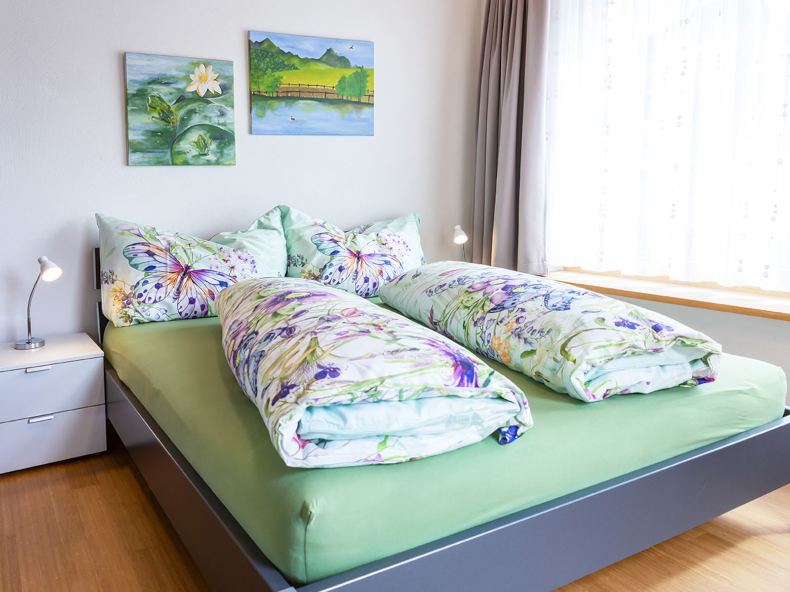 Die Wohnung verfügt über zwei Schlafzimmer mit je einem Doppelbett sowie einen geräumigen Nebenraum mit einem zusätzlichen ausklappbaren Doppelbett. Bettwäsche vorhanden und im Preis nicht inbegriffen.