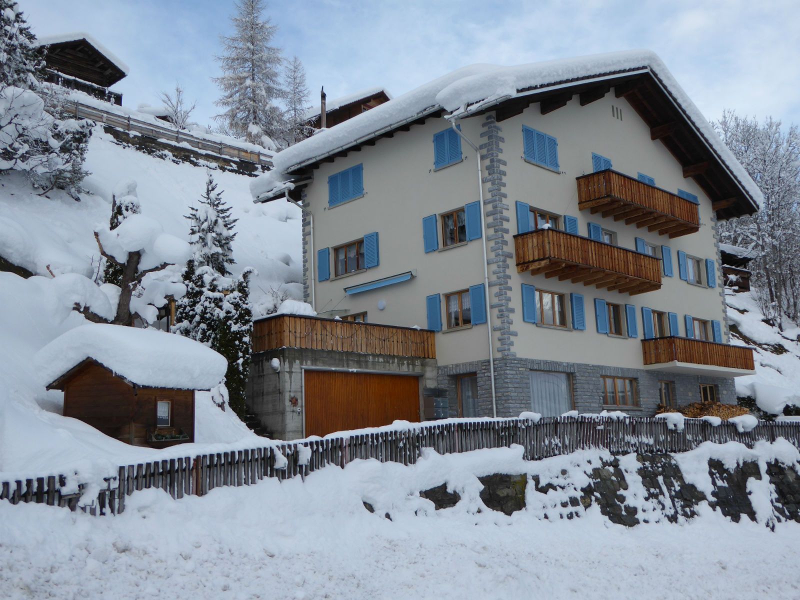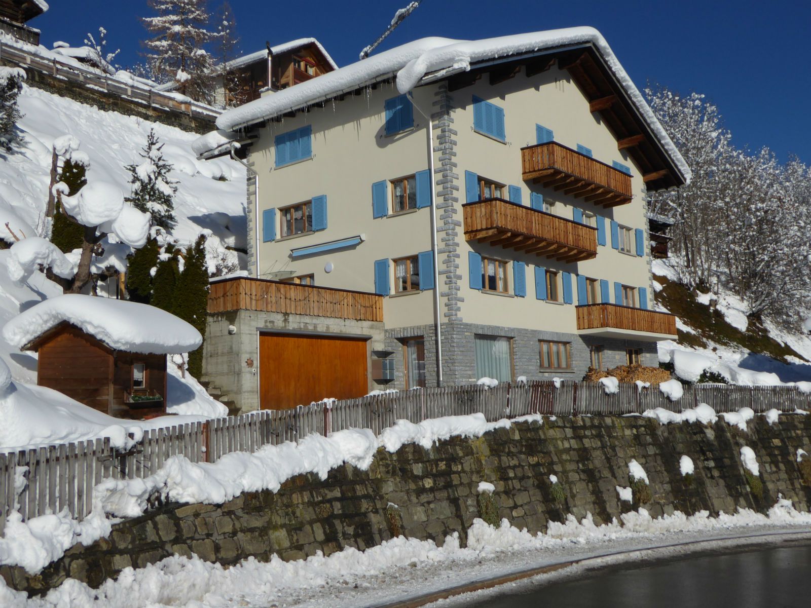 Die Ferienwohnung befindet sich im Parterre eines 3-stöckigen Mehrfamilienhauses. Das Haus selbst liegt in ruhiger Lage an einem windgeschützten, sonnigen Südhang mit einer herrlichen Aussicht auf die Berge und Terrassendörfer der linken Talseite.