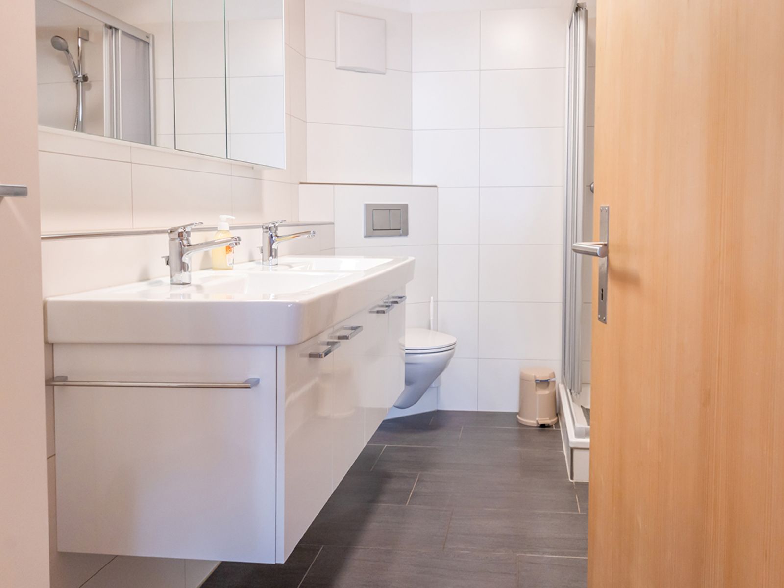 Modernes Bad mit Dusche/WC. Frotteewäsche vorhanden und im Preis nicht inbegriffen.