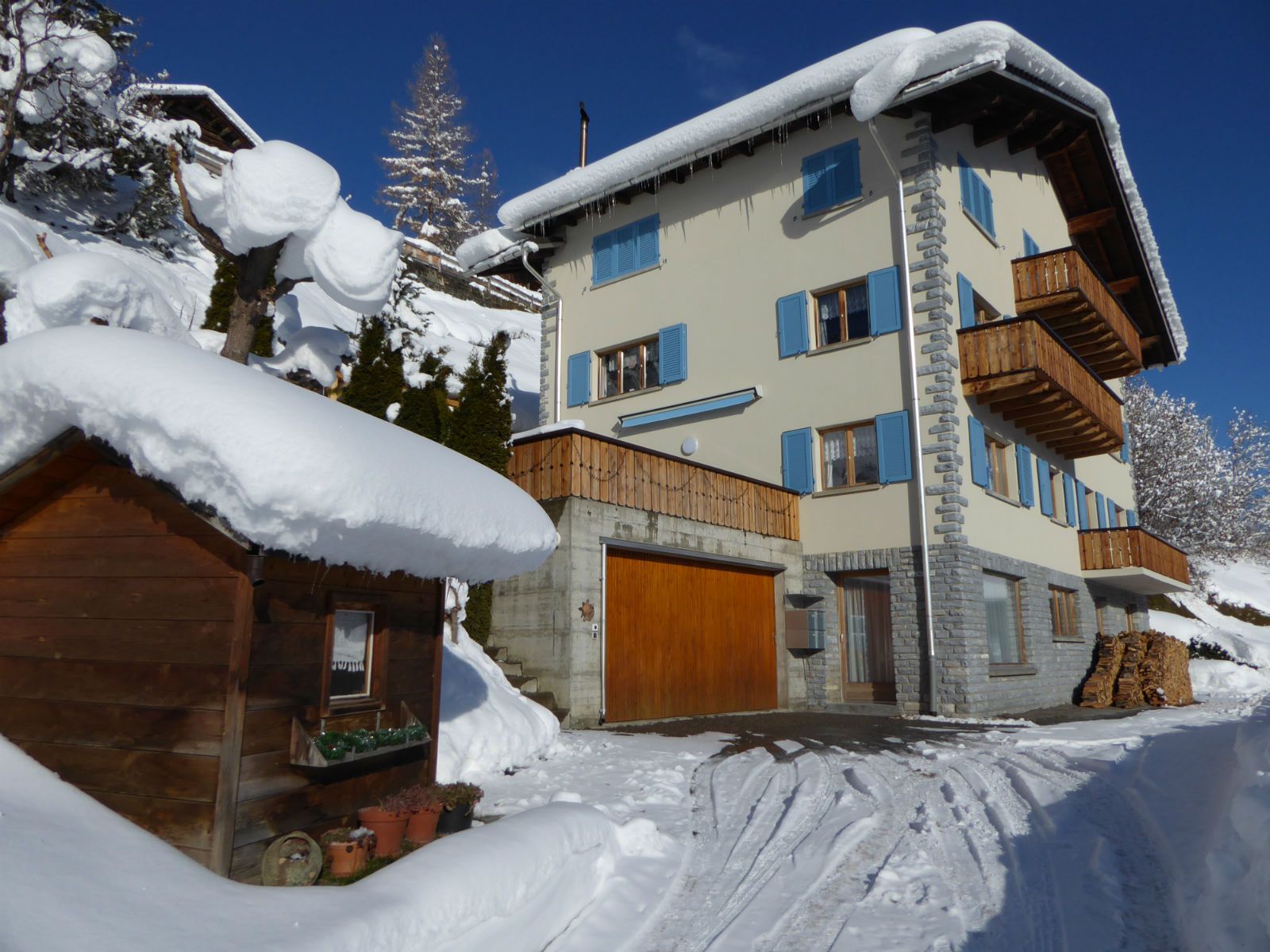 Die Ferienwohnung bietet zudem einen schönen Sitzplatz, Waschmaschine und Wäschetrockner (im Preis inbegriffen), Abstellraum für Winter- und Sommersportausrüstungen.