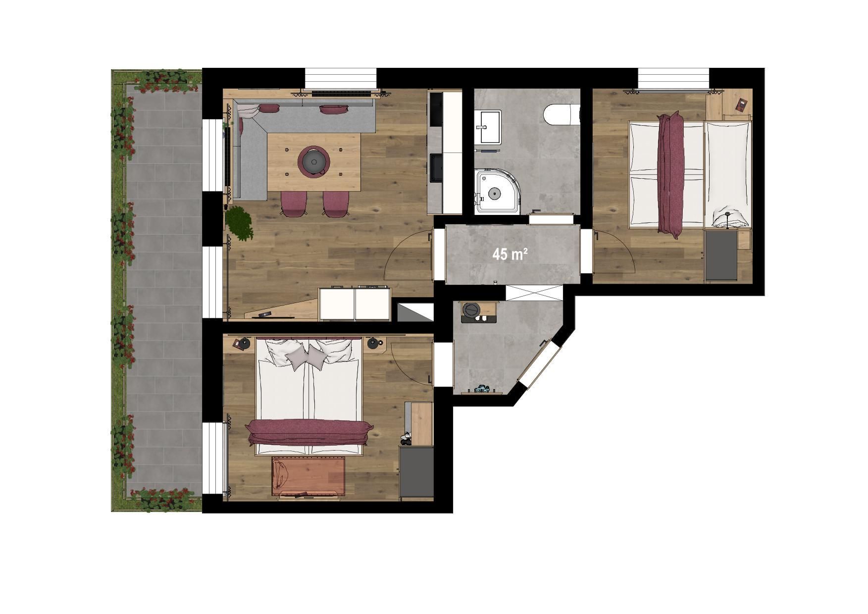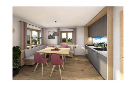 1. Etage ca. 45 qm, f. 1- 5 Personen, Wohnküche mit Essecke,