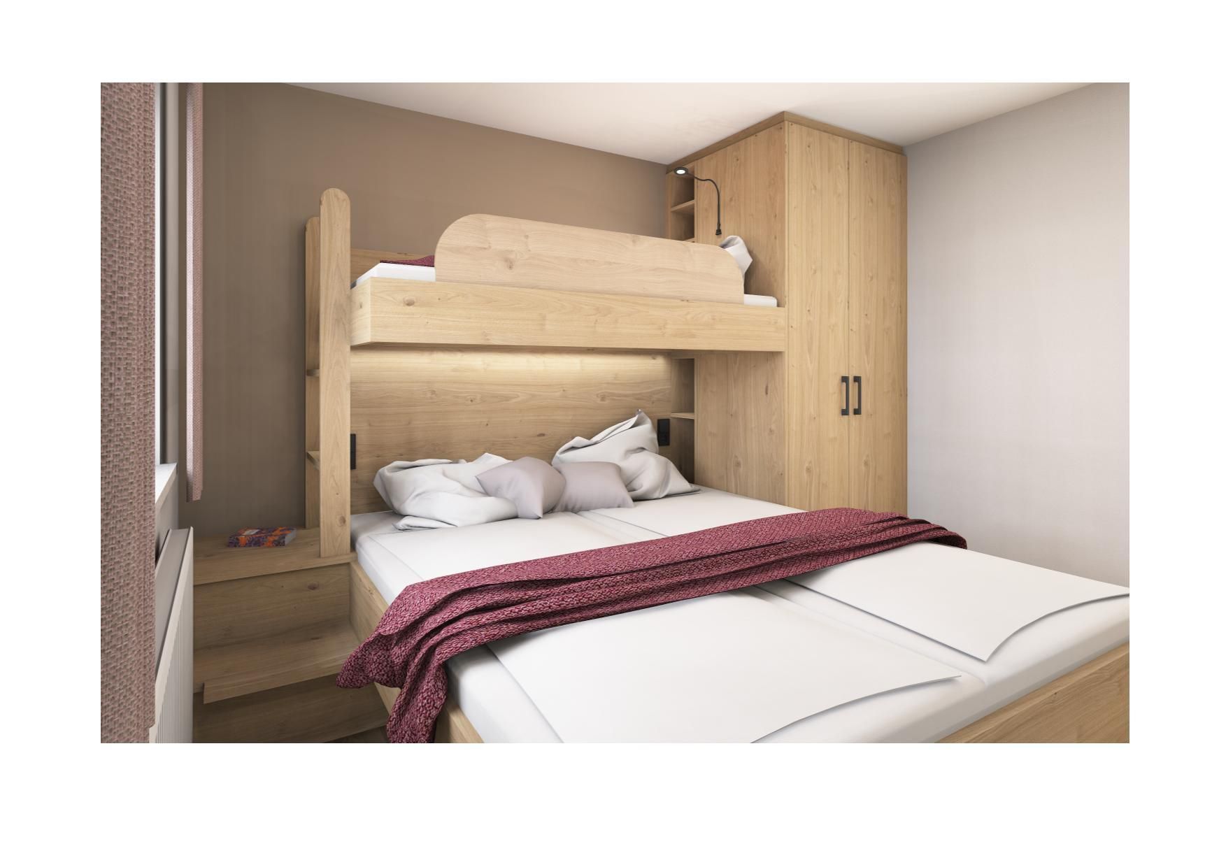 Küchenzeile m. Spülmaschine und Backofen, 2 Schlafzimmer m. Doppelbett sowie einem zusätzlichen Etagenbett, DU/WC,
