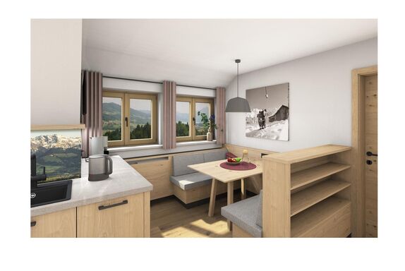 2. Etage ca. 43 qm, f. 1- 4 Personen, Wohnküche mit Essecke,