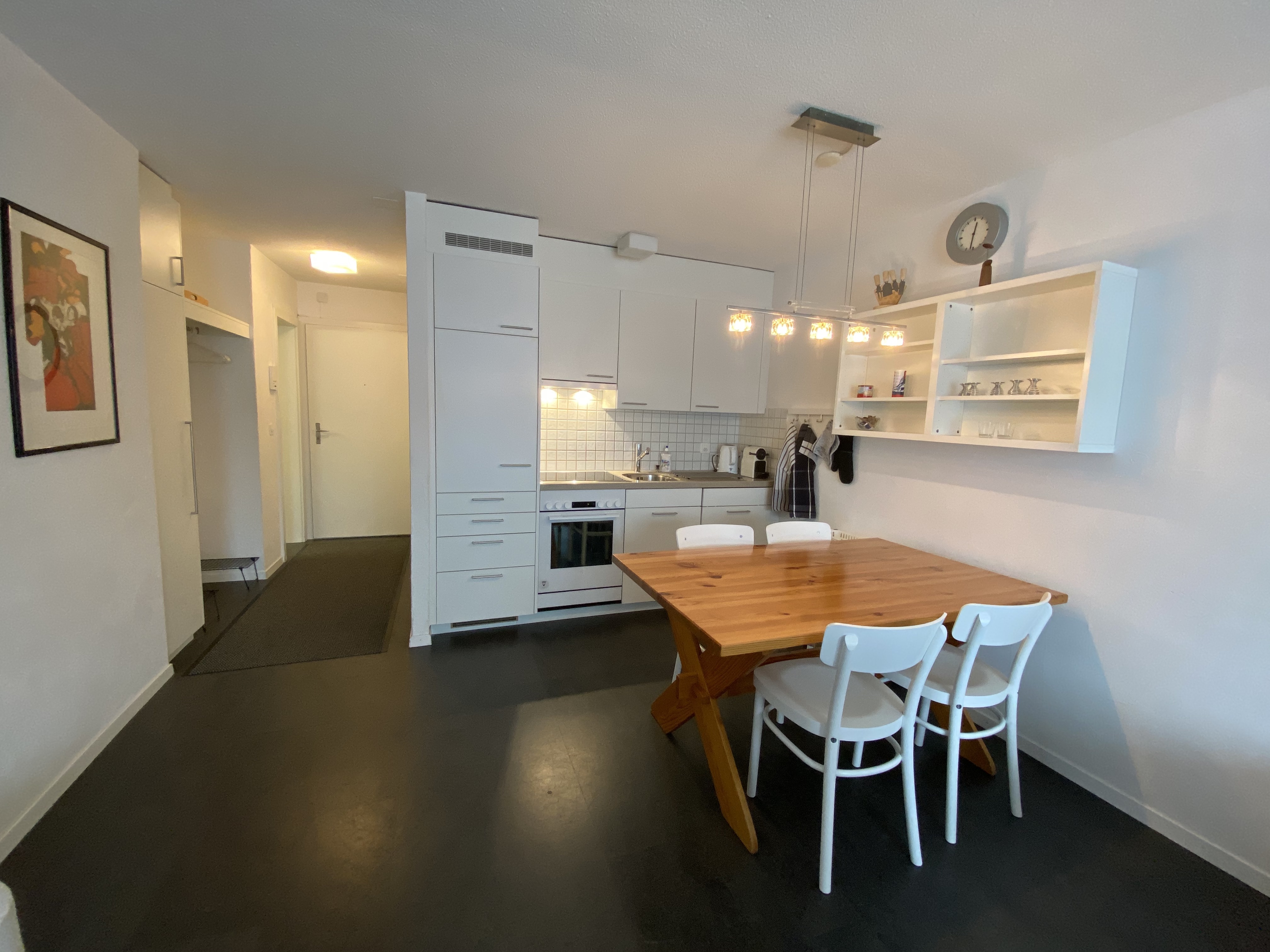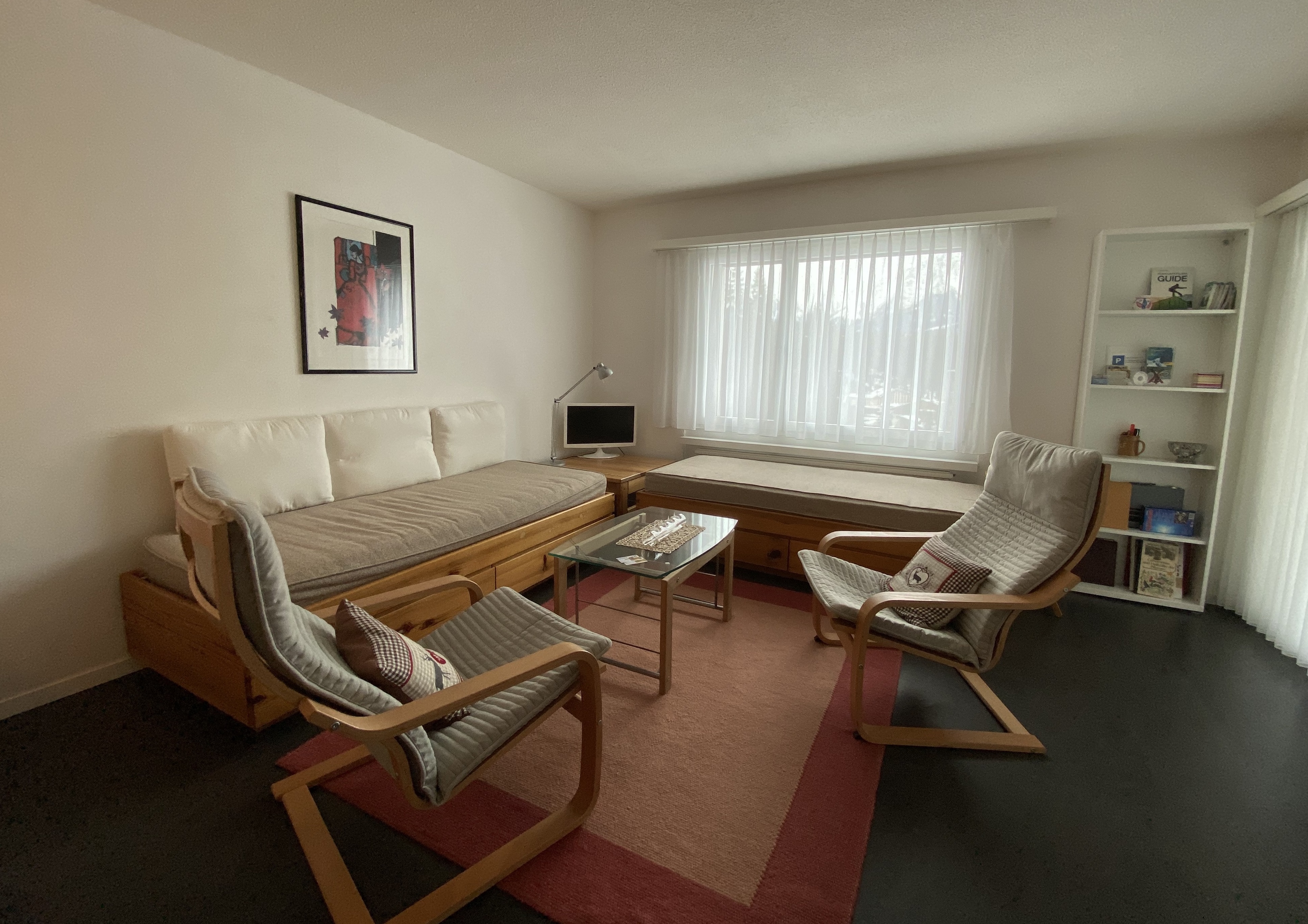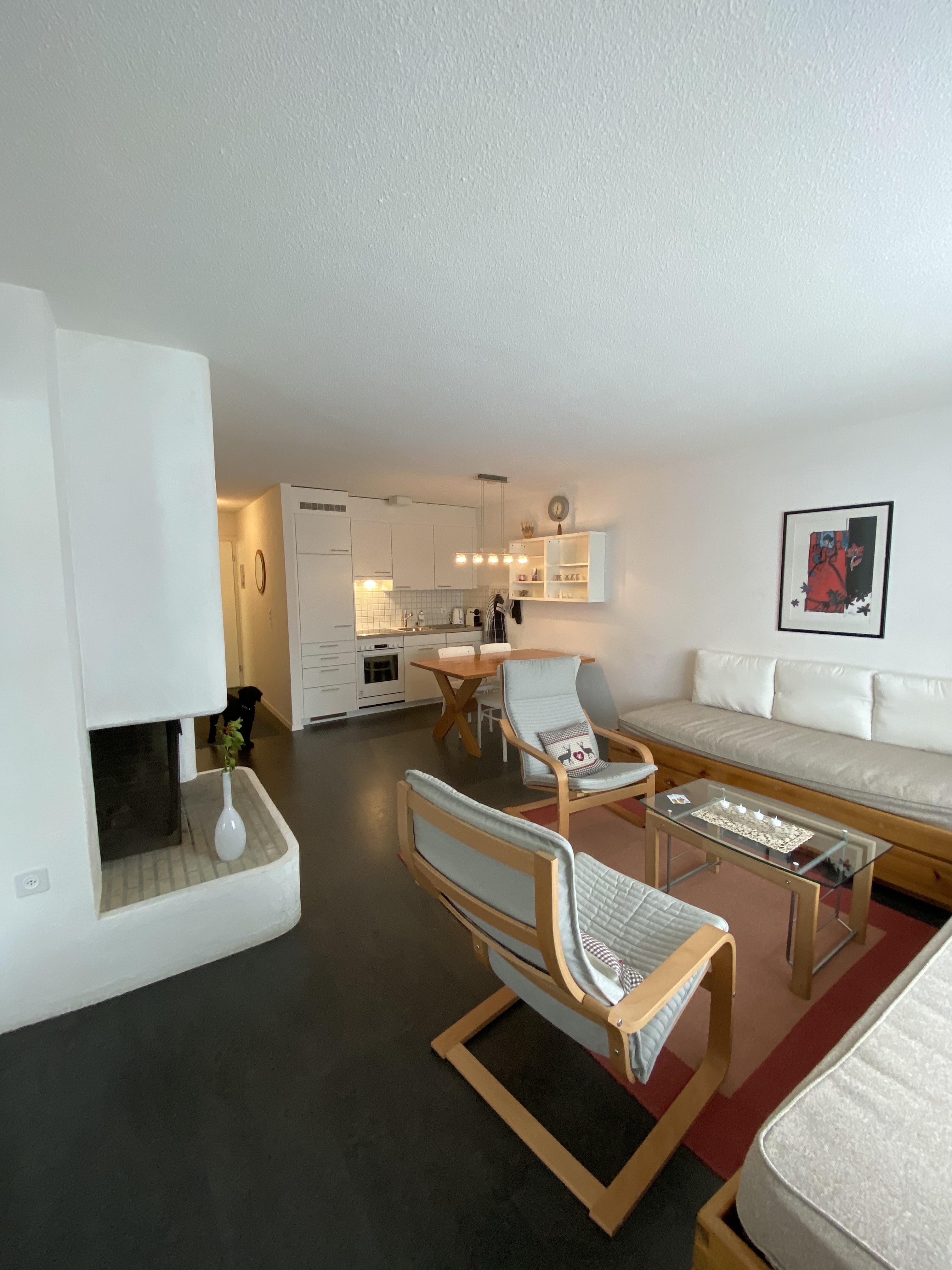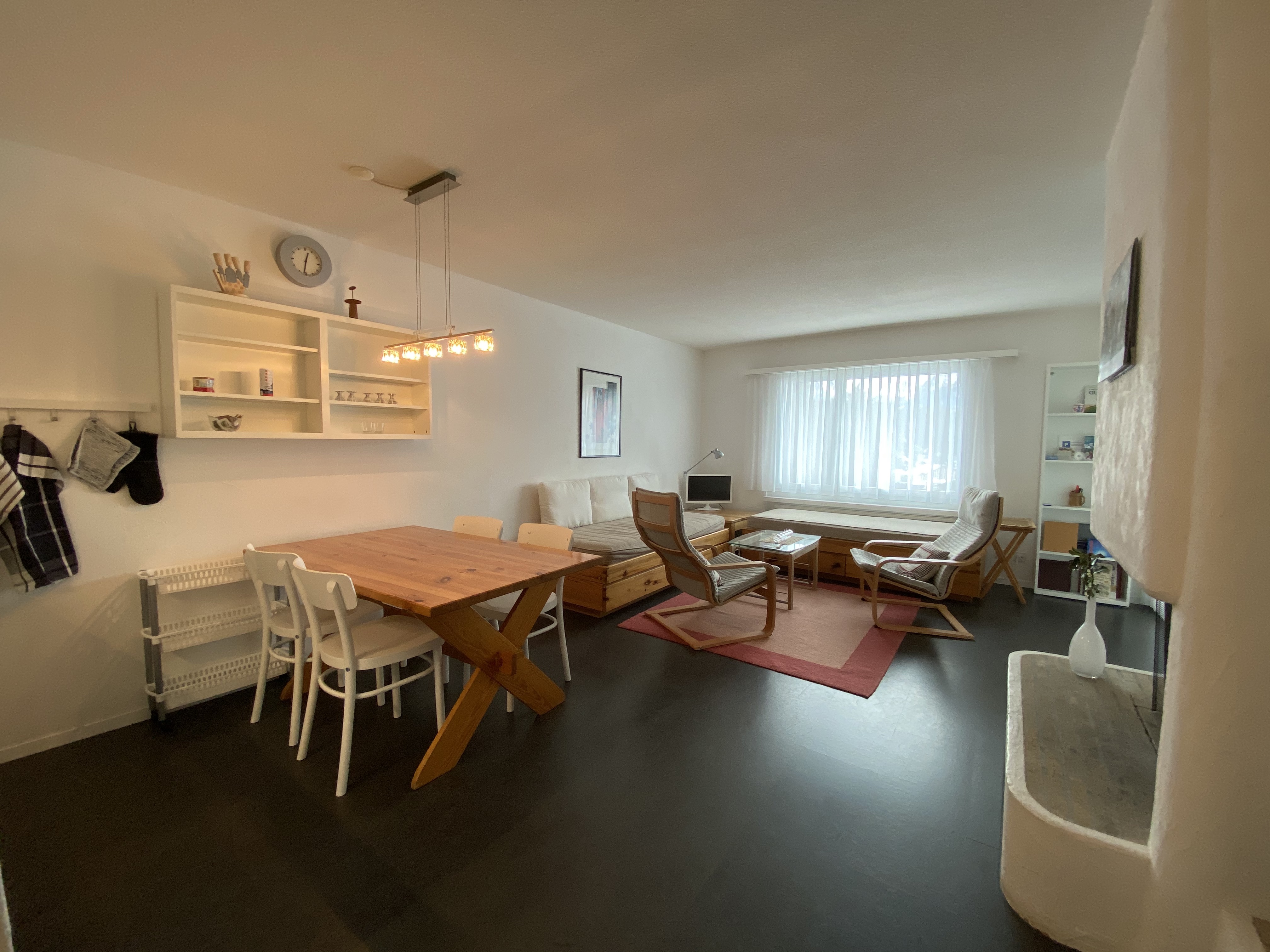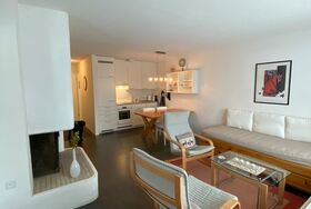 2.5 Zimmerwohnung, 49 qm, (4 Betten) in einem Mehrfamilienhaus in der Nähe der Bergbahnen. Nett und zweckmässig eingerichtet. Offene Küche mit Elektroherd, Backofen, Dampfabzug, Kühlschrank mit Gefrierfach und Geschirrspüler. Wohnzimmer mit 2 Bettenl, Klubtisch, TV, Internet, Esstisch mit 4 Stühlen und Cheminée. Schlafzimmer mit 1 Doppelbett und Einbauschrank. Badezimmer mit Doppellavabo, Badewanne und Toilette. Balkon nach Süden. Hallenbad mit direktem Zugang durch Einstellhalle. Sauna im Haus, kleine Gebühr (Münzautomat). Die Bettwäsche, Frottee und die Endreinigung sind im Endpreis inbegriffen.