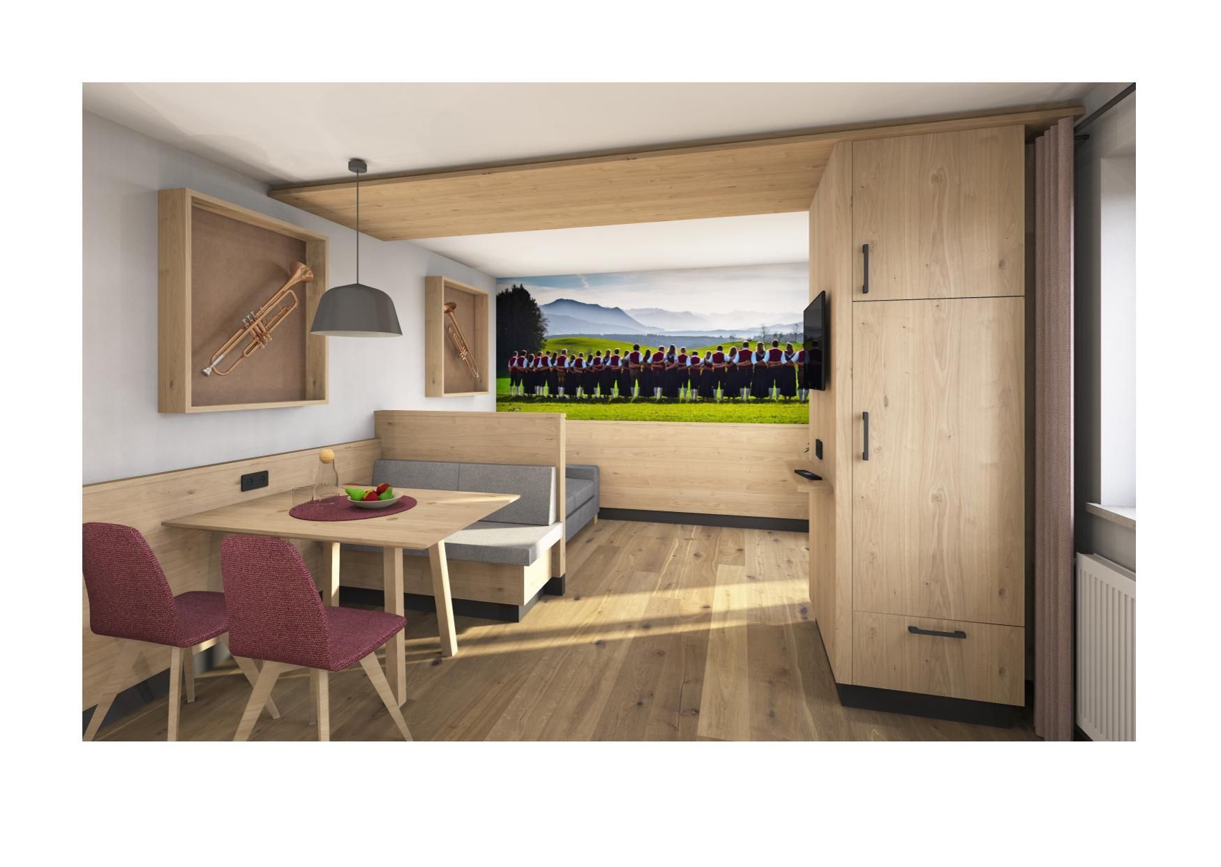 Ob bei einem Spaziergang über die weitläufigen Wiesen oder beim Entspannen im eigenen Garten, der Platz für die ganze Familie lädt zum Verweilen ein. Kinder sind hier herzlich willkommen und können sich auf dem Kinderspielplatz austoben, während Sie in einer der gemütlichen Liegestühle die Seele baumeln lassen. Für die Abenteuerlustigen bieten sich Wanderwege und die Möglichkeit zur Schneeschuhwanderung, um die Umgebung aktiv zu erkunden.