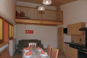 2 Ferienwohnungen für 4 - 6 Personen (60 - 77 m²), zweigeschossig mit zwei geräumigen Schlafzimmern und südseitig gelegenem Balkon mit hohem Ausstattungsstandard. 1 Ferienwohnung für 2-4 Personen (40 m²) mit Einrichtung in Vollholz, Liegewiese und Sonnenterrasse. Ruhige, sonnige Lage in direkter Liftnähe.
