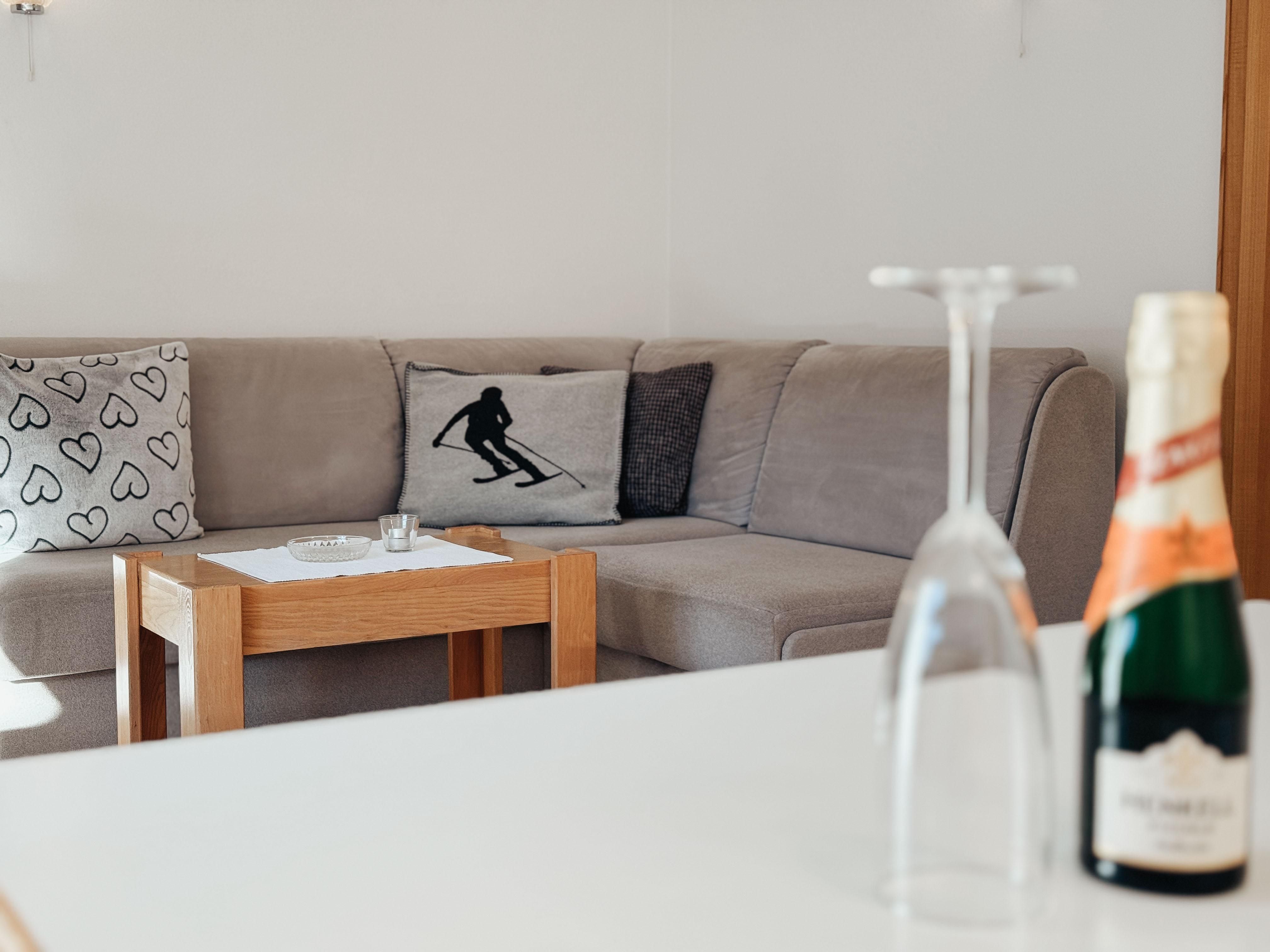 Das 65m2 große quartier Nr. 3 ist hell und freundlich eingerichtet, hat einen Wohn-/Ess- und Kochbereich mit hochwertiger Eckcouch, Zugang zum Sonnenbalkon und einen wunderbarem Blick auf den Hausberg Golm. Vom Vorraum aus gelangt man in des geräumige Bad mit Dusche/WC, 2 getrennte Schlafzimmer und ein zusätzliches WC mit Handwaschbecken.