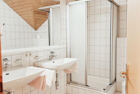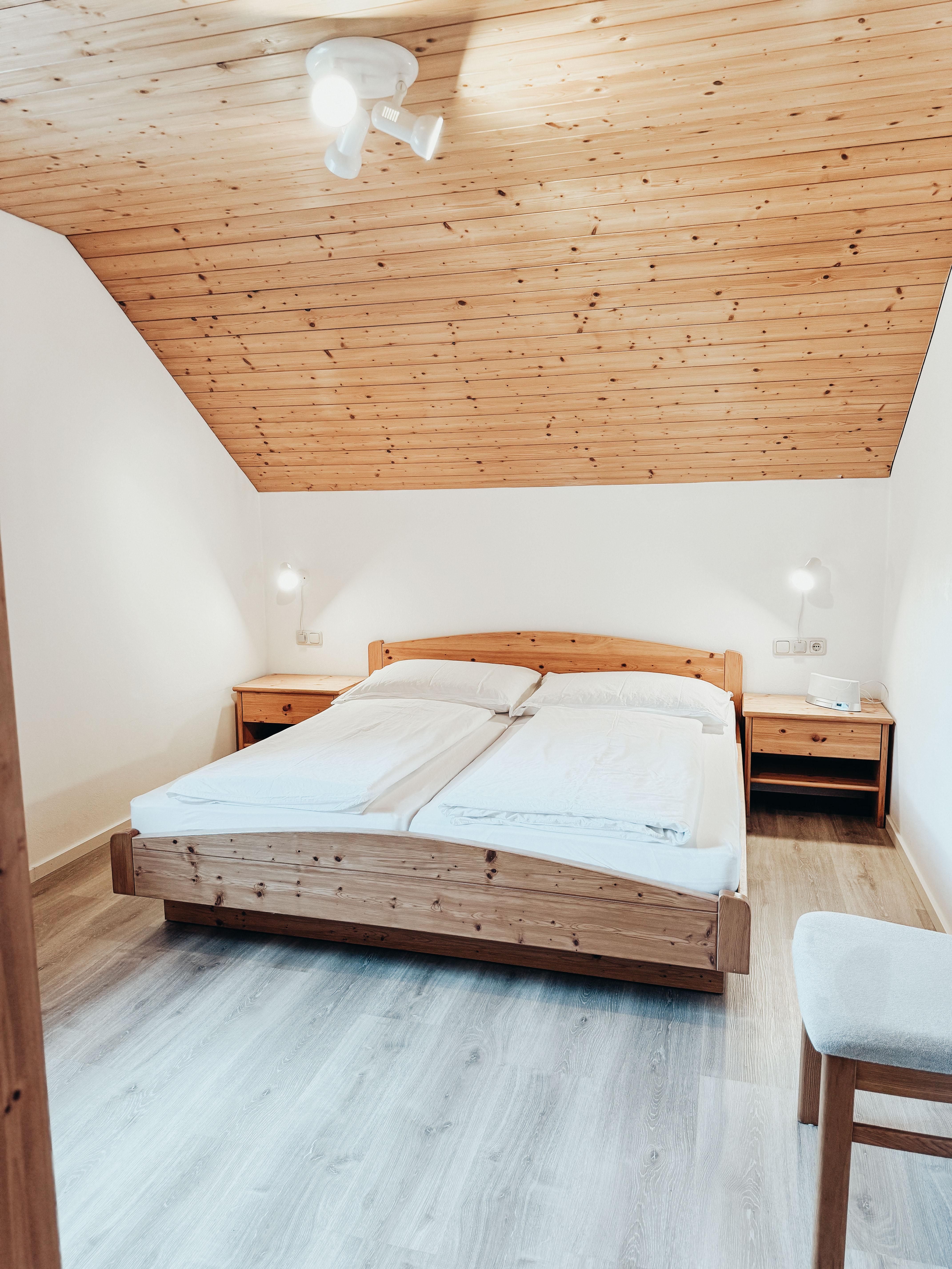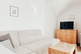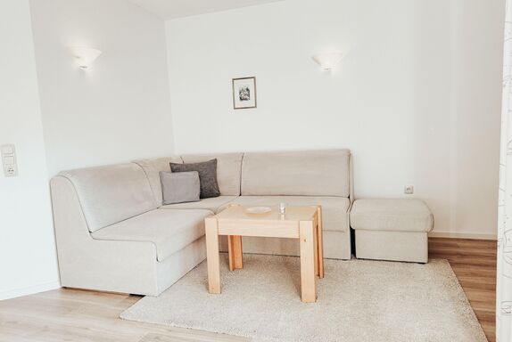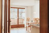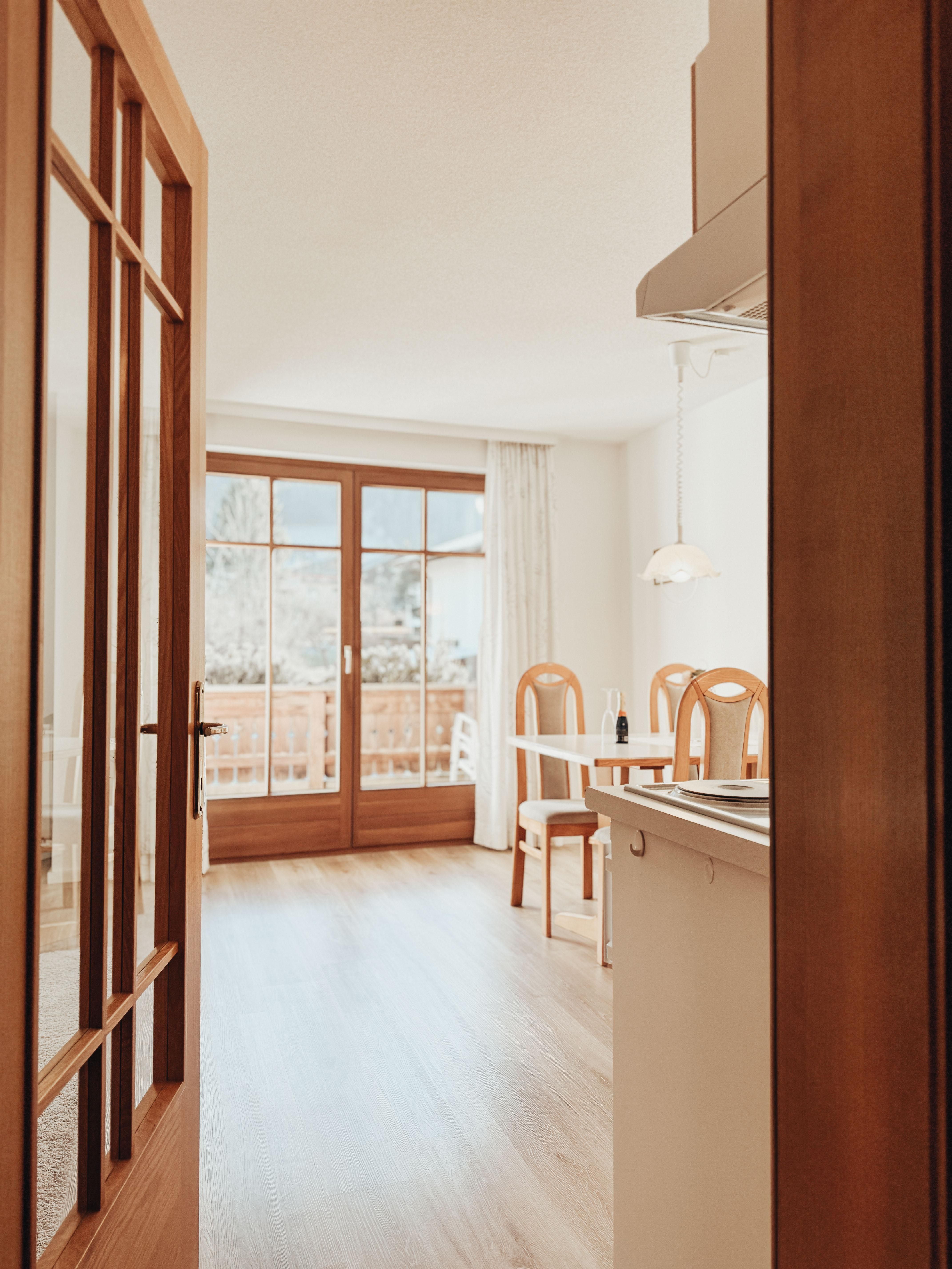 Das 62m2 große Apartment quartier Nr. 2 ist hell und freundlich eingerichtet, hat einen Wohn-/Ess- und Kochbereich mit hochwertiger Eckcouch, Zugang zum Sonnenbalkon und einen wunderbarem Blick auf die Mittagspitze. Vom Vorraum aus gelangt man in des geräumige Bad mit Dusche/WC, 2 getrennte Schlafzimmer und ein zusätzliches WC mit Handwaschbecken.