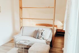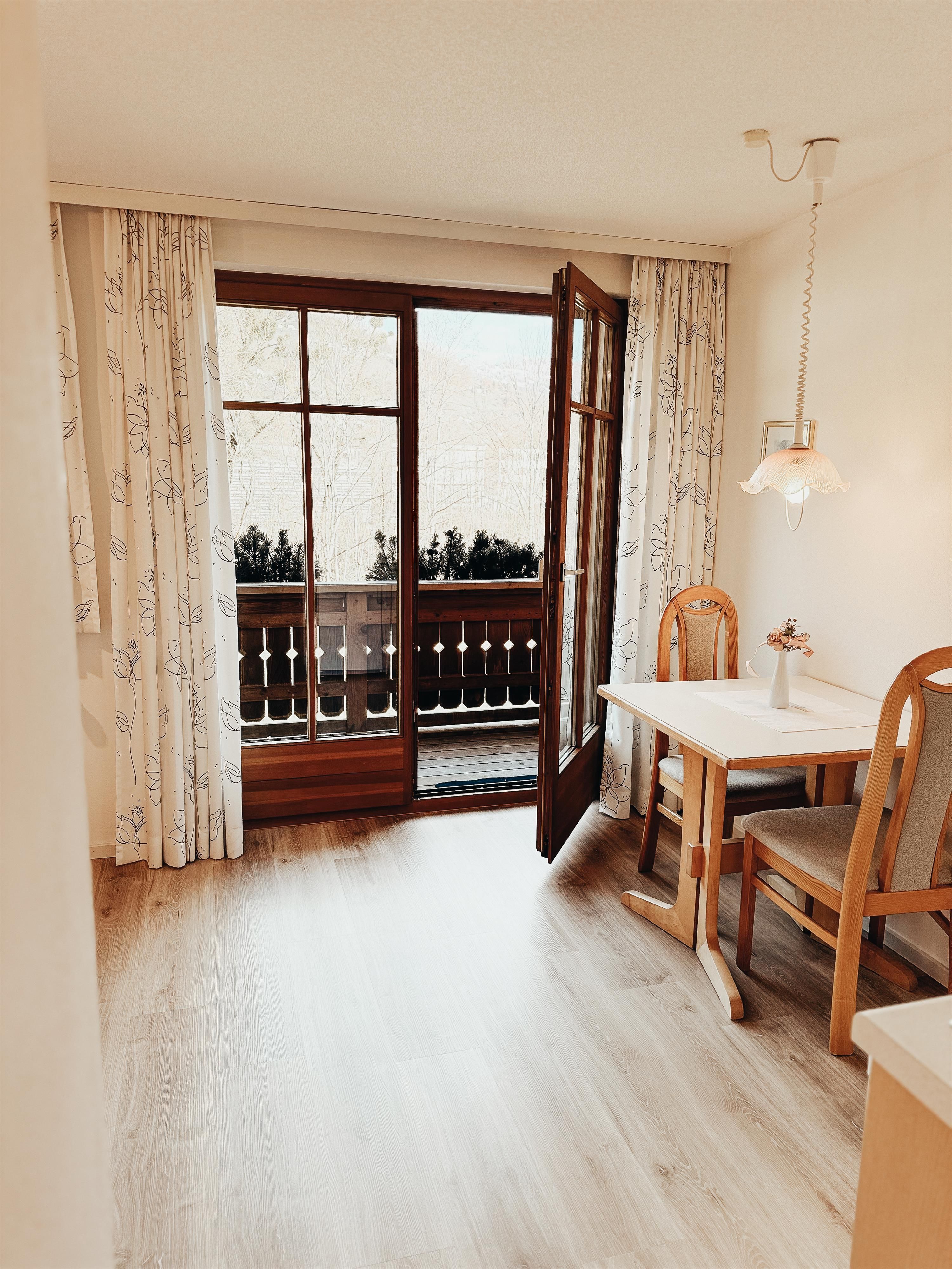 Das 32 m2 große Apartment im charmanten Studio-Charakter hat einen offenen Wohn-und Essbereich, sowie ein Bad mit Dusche/WC. Der Schlafbereich ist durch einen Raumteiler vom Wohnbereich abgetrennt. Vom Balkon aus hat man einen Weitblick auf die Berge. Durch die ruhige Lage ist dieses Apartment die richtige Wahl um nach ausgedehnten Berg- oder Skitagen zu entspannen und die Seele baumeln zu lassen.
