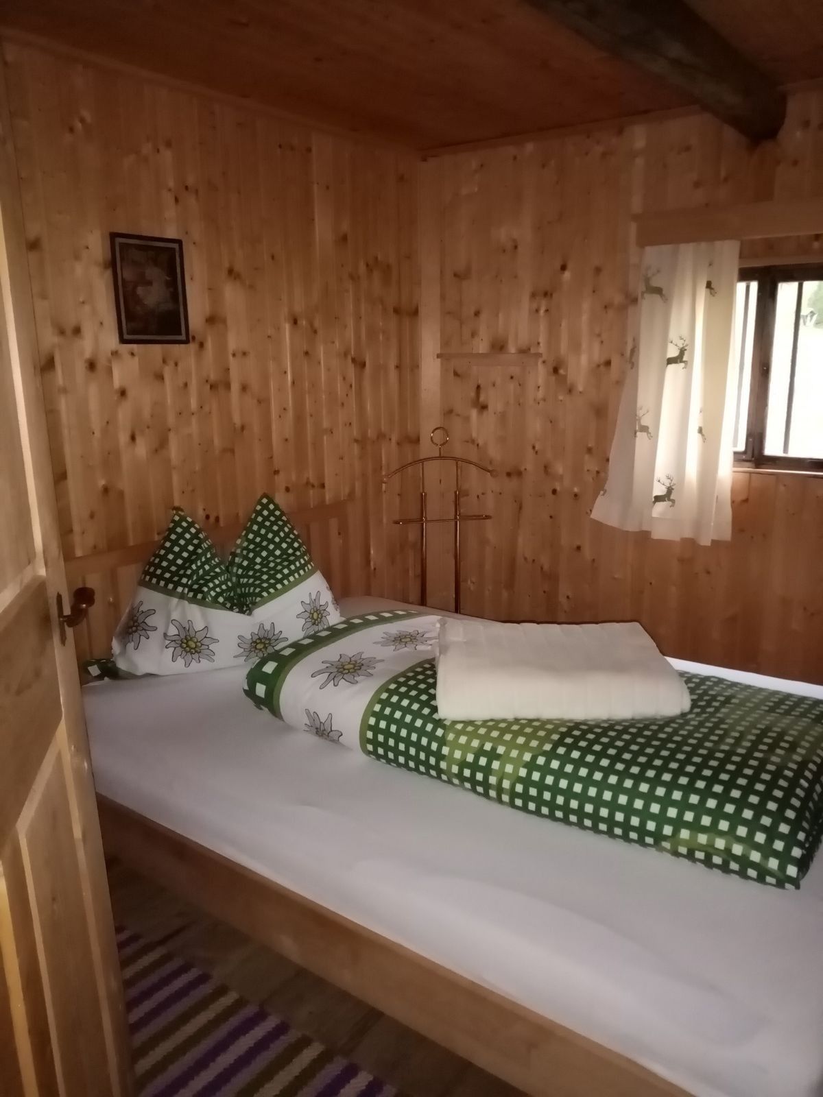 Die Unterkofler Almhütte verfügt über ein Doppelbettzimmer und zwei Zweibettzimmer, die rustikal und liebevoll eingerichtet sind. Das Badezimmer mit Dusche und WC wird durch den Ofen in der Stube mit Warmwasser versorgt – ganz wie früher.