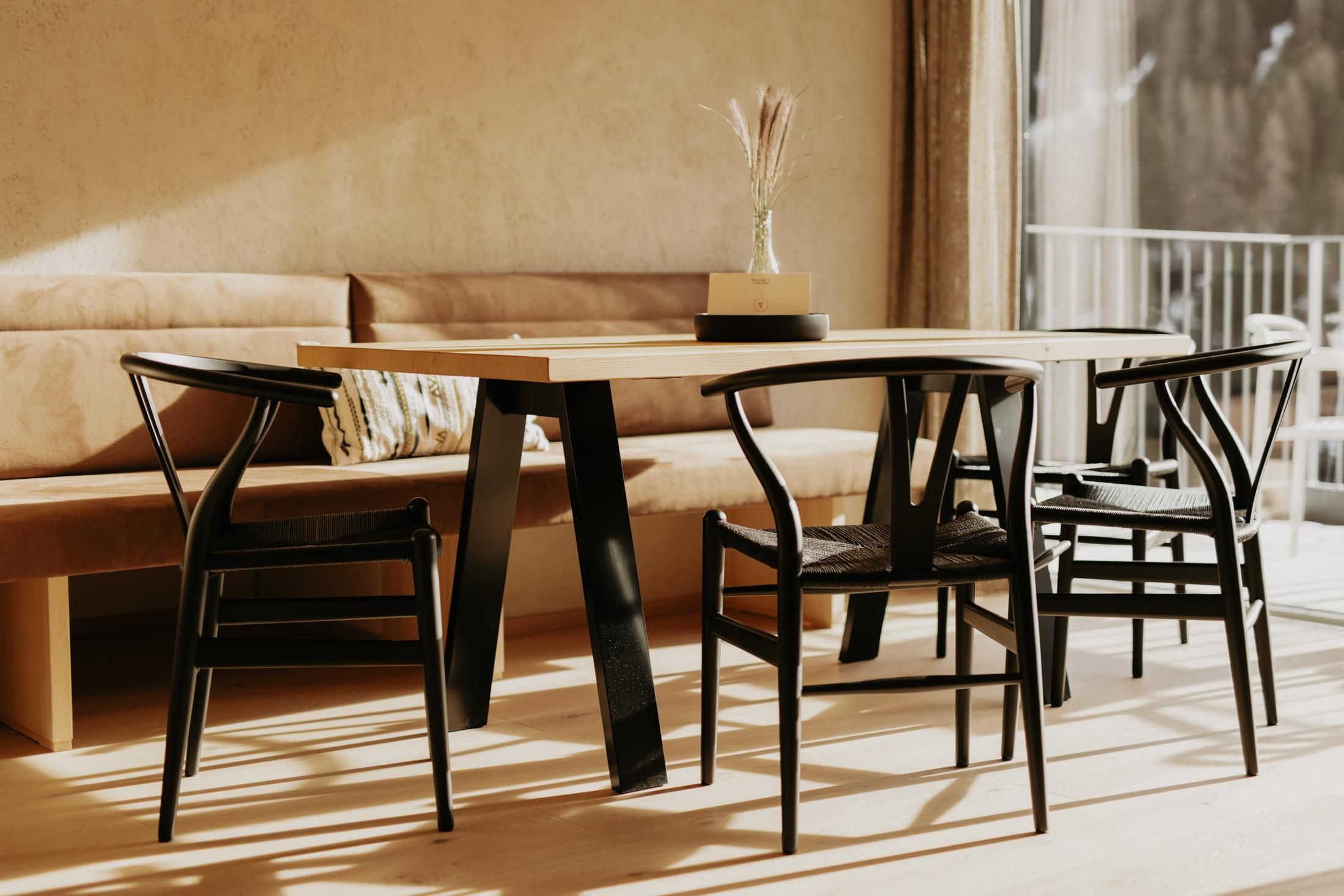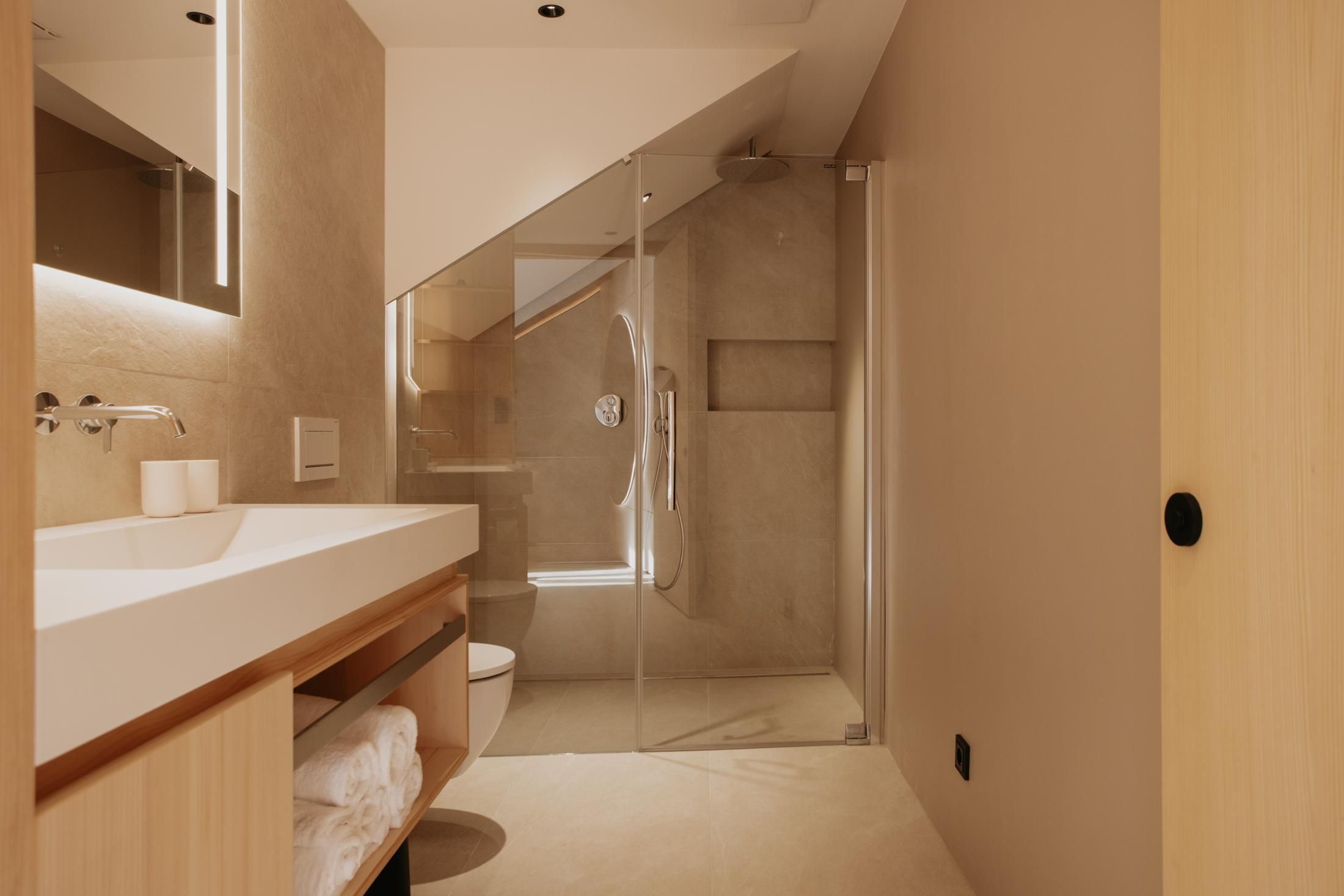 Toms View Premium Apartment 1 erstreckt sich über zwei Ebenen und bietet auf 66 m² Platz für bis zu 4 Personen. Im Obergeschoss haben Sie ein Schlafzimmer mit Doppelbett und Badezimmer. Im Erdgeschoss gibt es eine voll ausgestattete Küche mit offenem Wohn- und Essbereich. Die Schlafcouch bietet Platz für zwei weitere Personen, und von hier aus gelangen Sie auf den Balkon mit herrlichem Blick auf die Berge. Außerdem haben Sie im Untergeschoss Zugang zum Fitness- und Wellnessbereich.