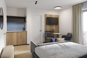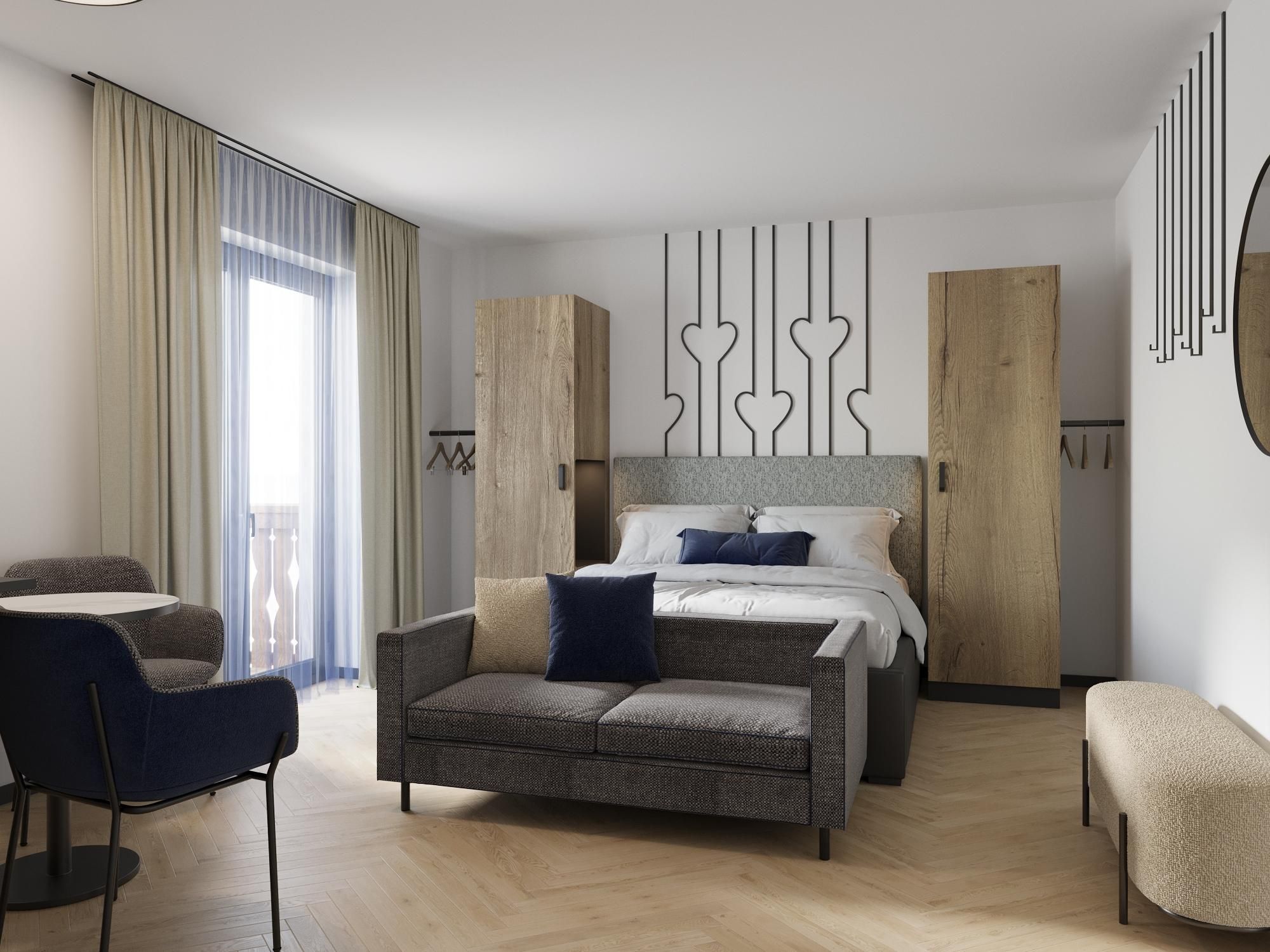 Unser Superior Doppelzimmer ist ausgestattet mit einem Doppelbett, sowie einer Schlafcouch für ein Kind. Neben dem Bad mit Dusche, findet man im Zimmer eine Anrichte mit Geschirr und Besteck, sowie einen Balkon.