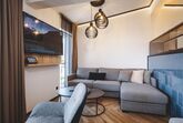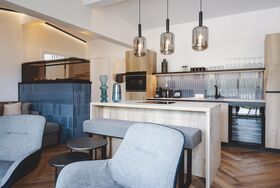 Die 2-Schlafzimmer Deluxe Suite verfügt über 2 separate Schlafzimmer mit Doppelbett, 2 Bäder mit Dusche und WC, ein separates WC, sowie eine voll ausgestattete Küche mit Sitzgelegenheiten. Absolutes Highlight dieser Suite ist die private Sauna. Vom Wohnbereich aus erreichen Sie den Balkon. Eine Schlafcouch bietet Platz für 2 weitere Personen.