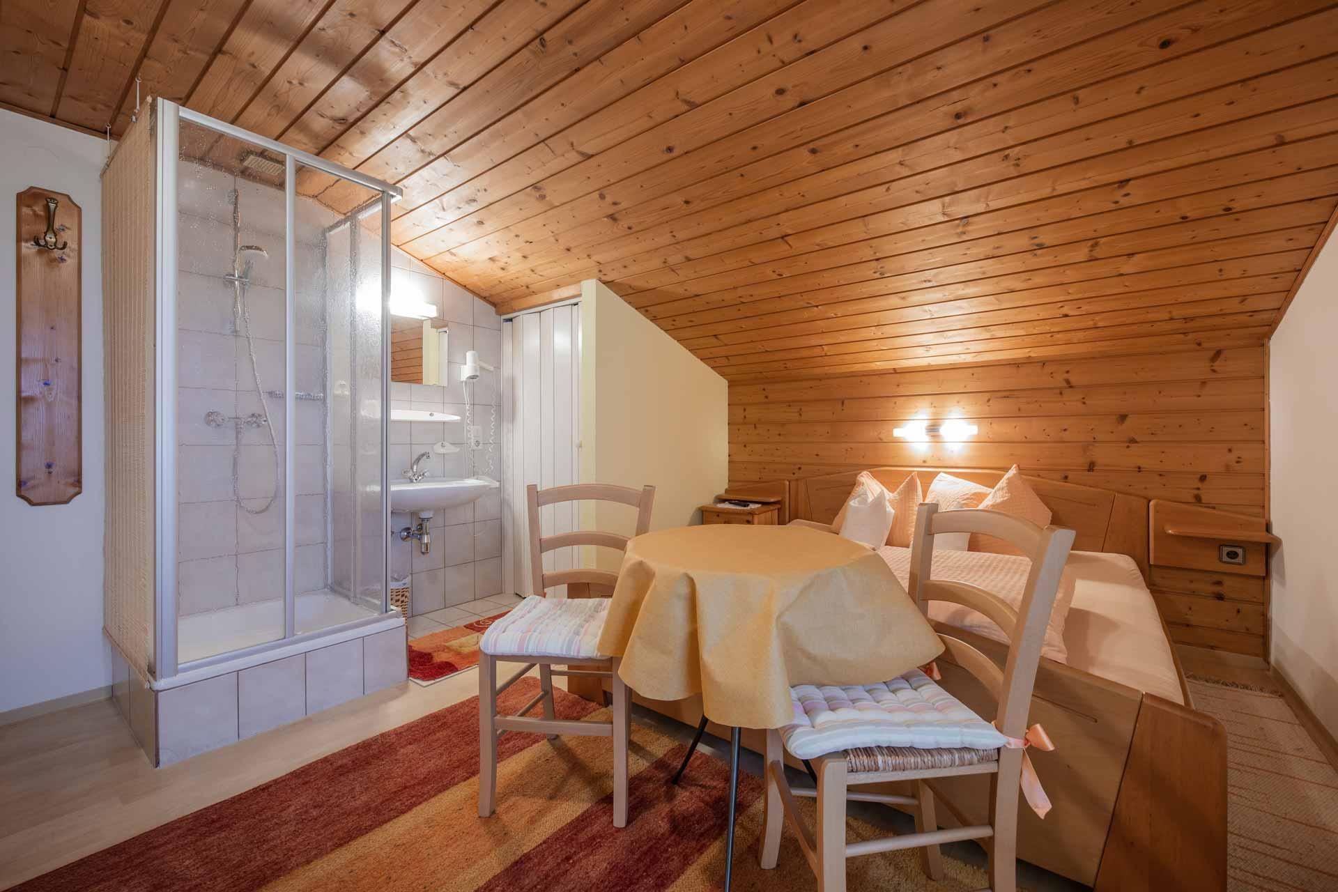 Unser gemütliches Single Appartement bestehend: 1 Bett, Couch, Esstisch, DU/WC, Föhn, SAT-TV, großer gemütlicher Balkon mit traumhafter Aussicht, kleine Küche mit Kühlschrank und Mikrowelle.