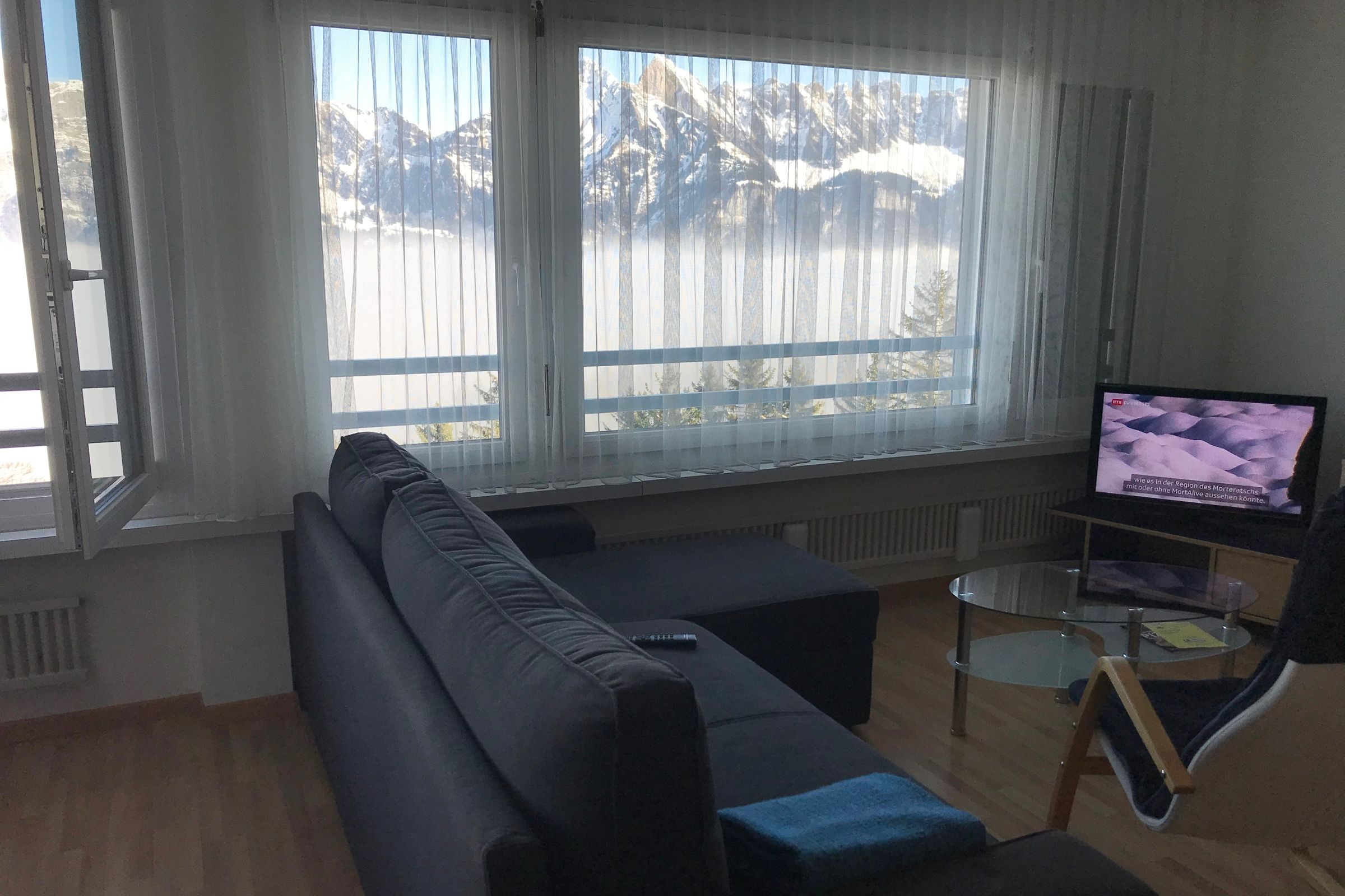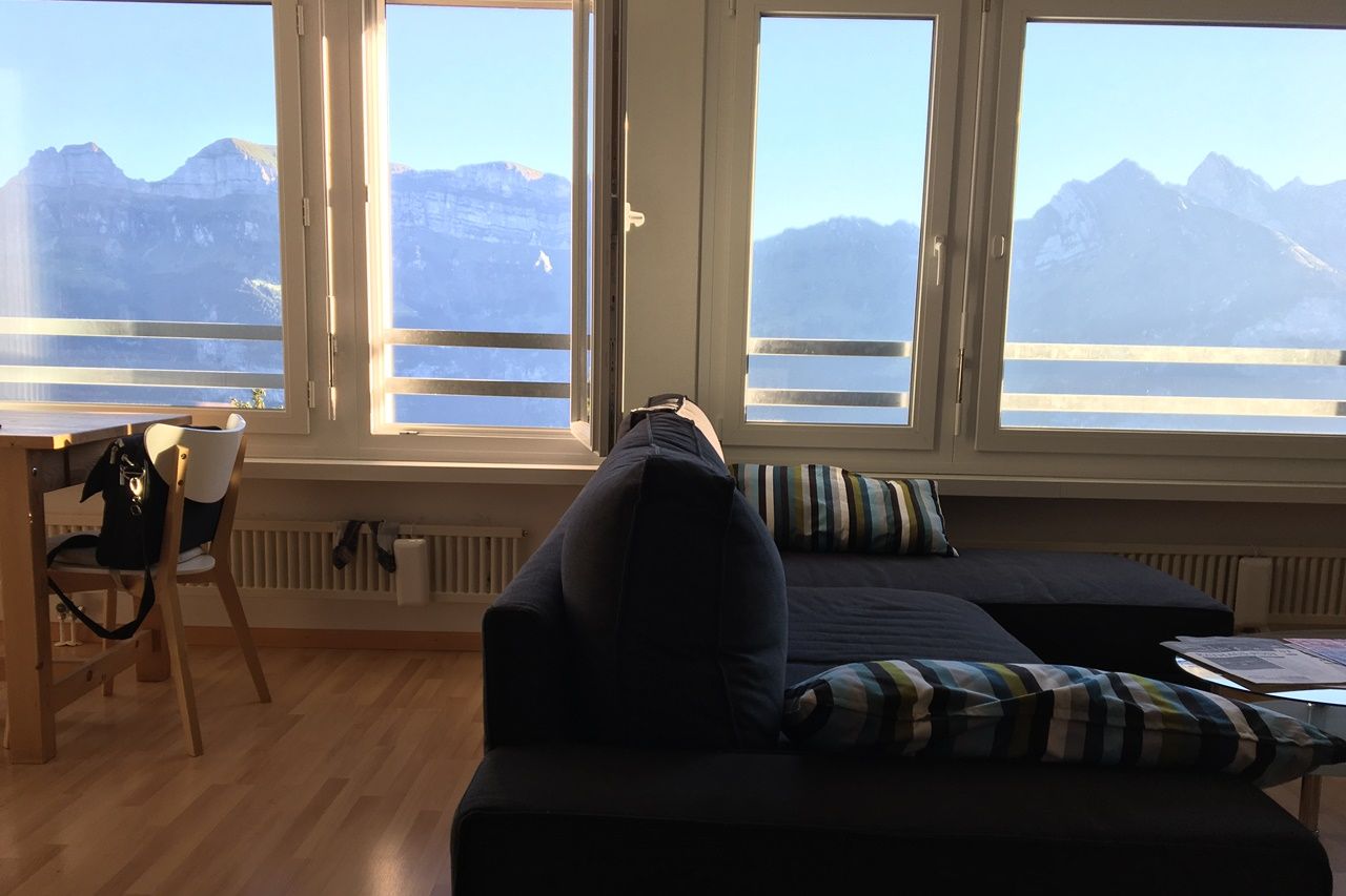 Die helle Wohnung mit traumhafter Aussicht ist modern und gemütlich eingerichtet. Schlaf-, Wohn- und Essbereich ist ein Raum und bietet Platz für bis zu 4 Personen. Die ganze Wohnung ist mit einem Parkettboden ausgestattet. Technische Einrichtung