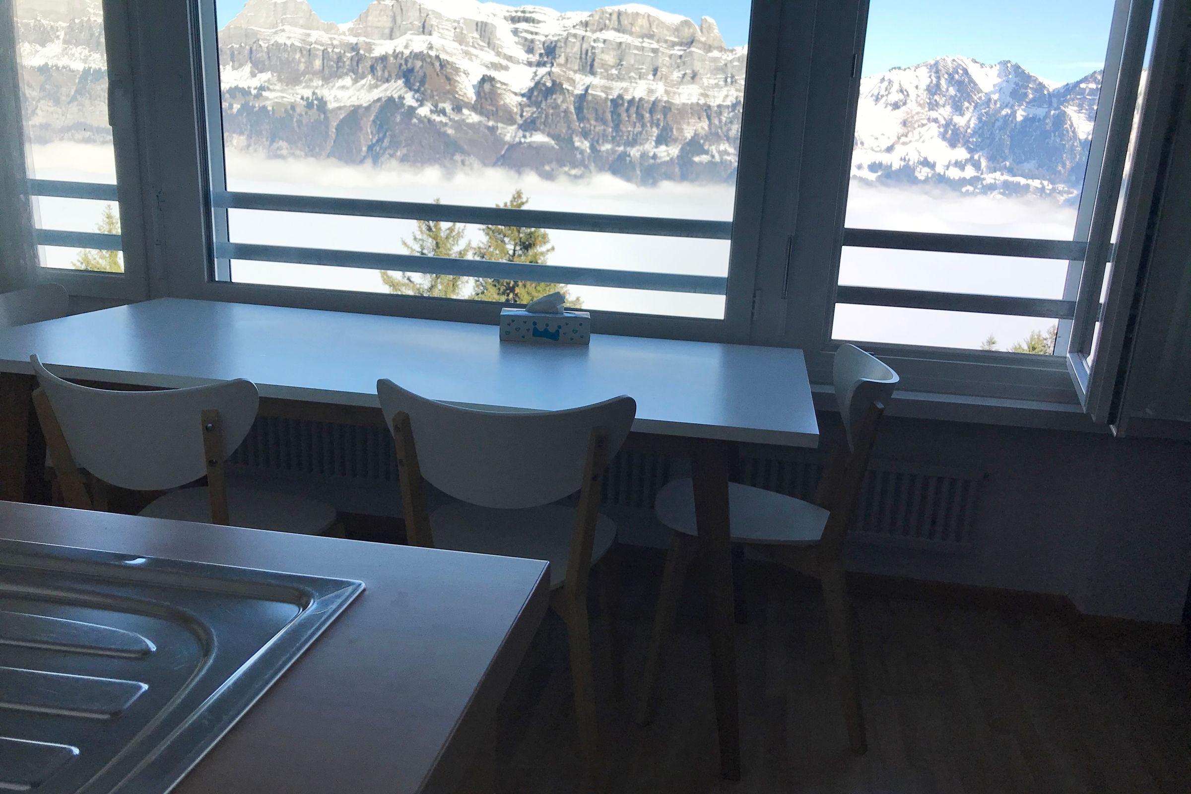 Die 1.5 Zimmerwohnung befindet sich zuoberst im 11. Stock im MFH Gauenpark in Flumserberg Tannenheim mit herrlicher Aussicht auf die Churfirsten und den Walensee. Die Wohnung ist sehr ruhig gelegen. Ein Parkplatz ist kostenlos vorhanden. Schlafzimmer