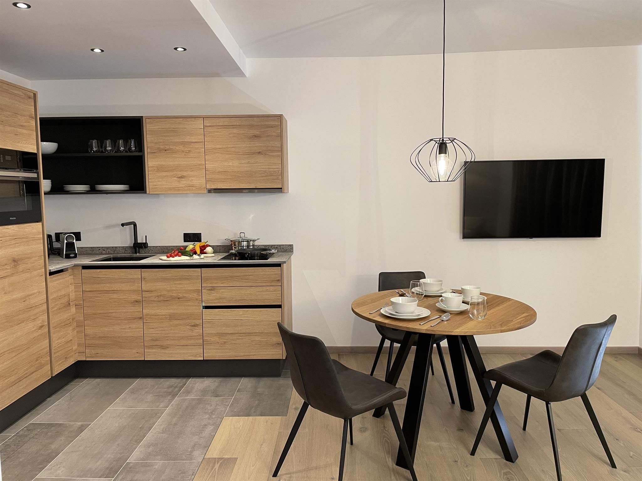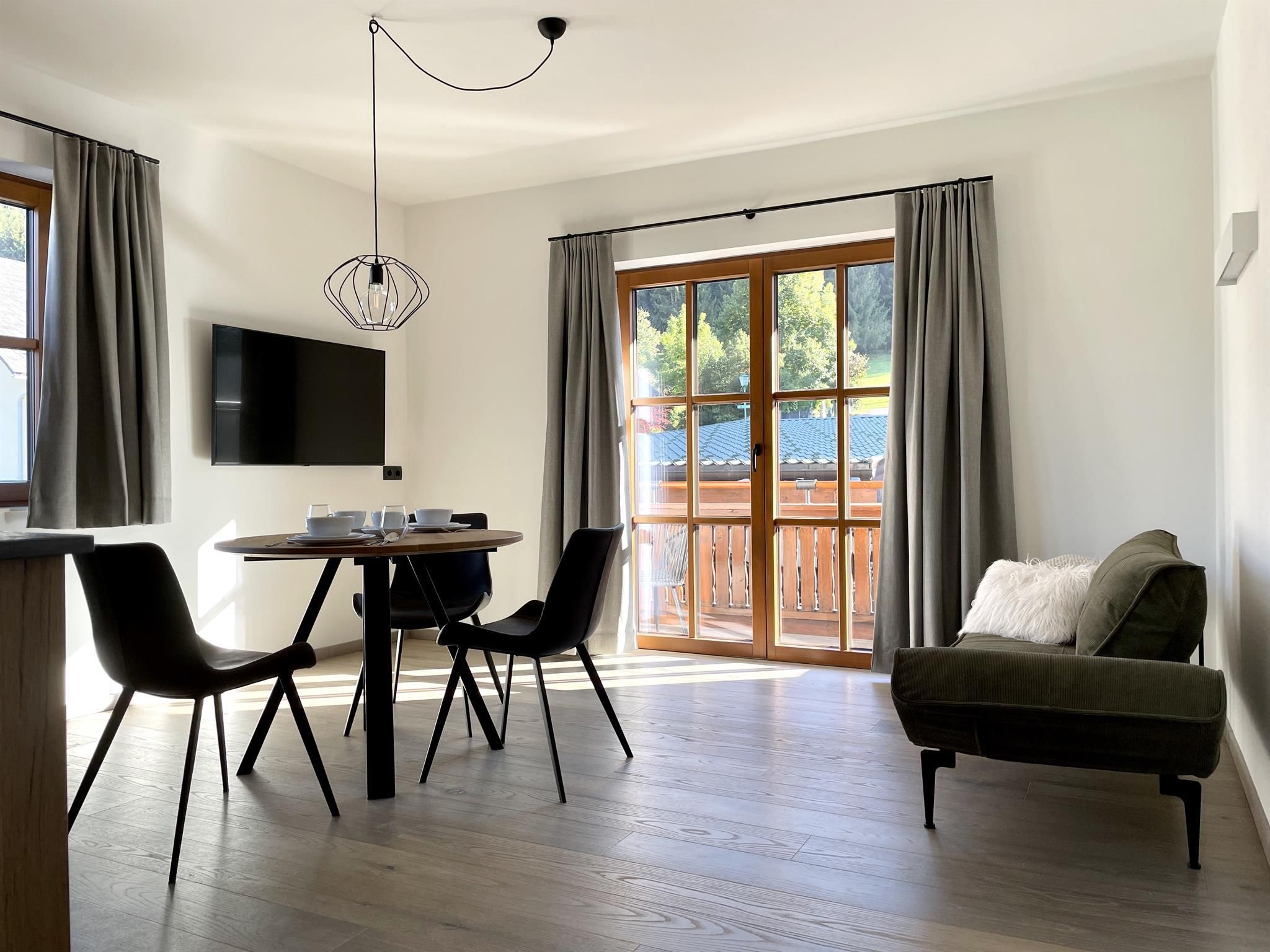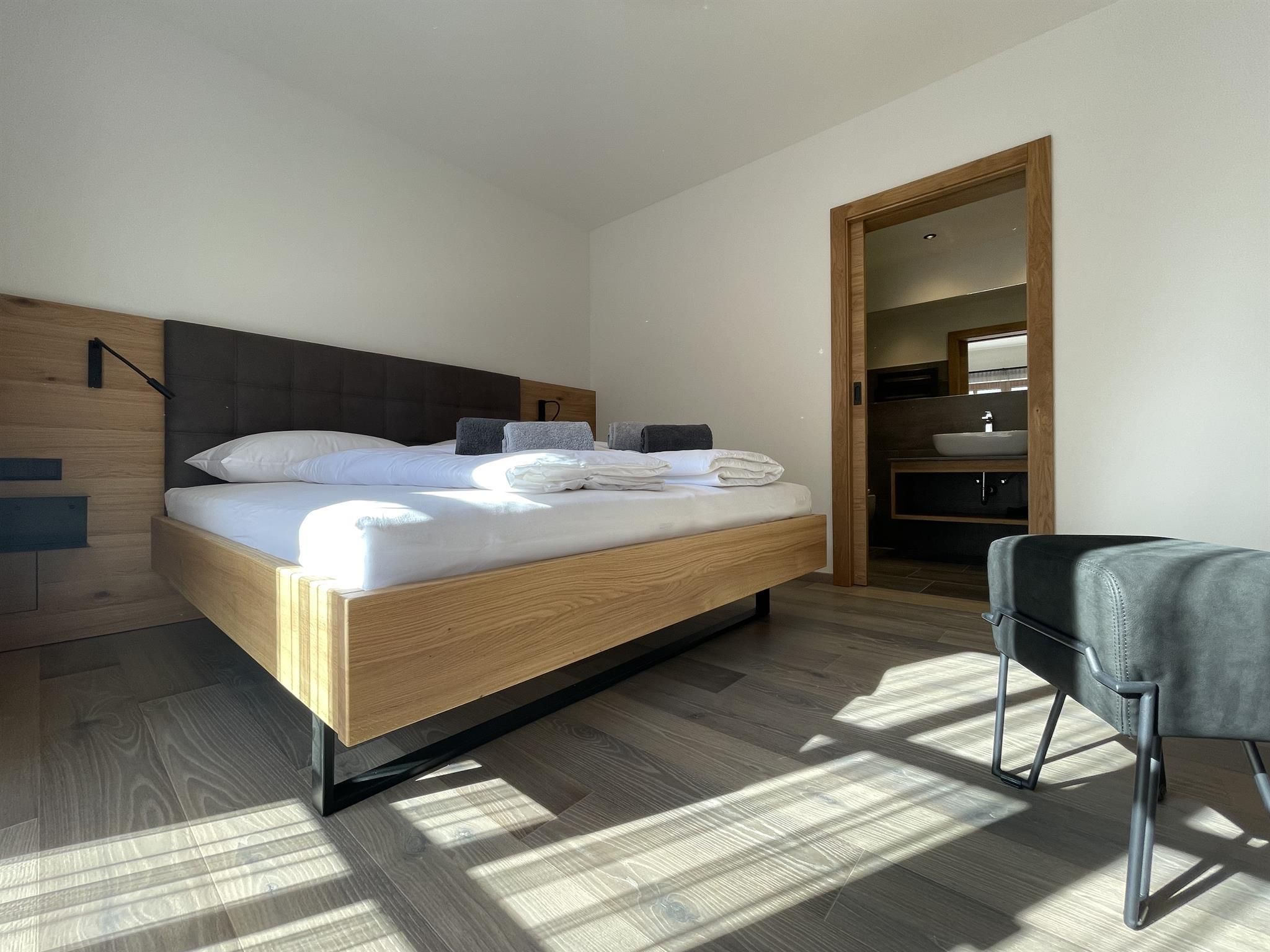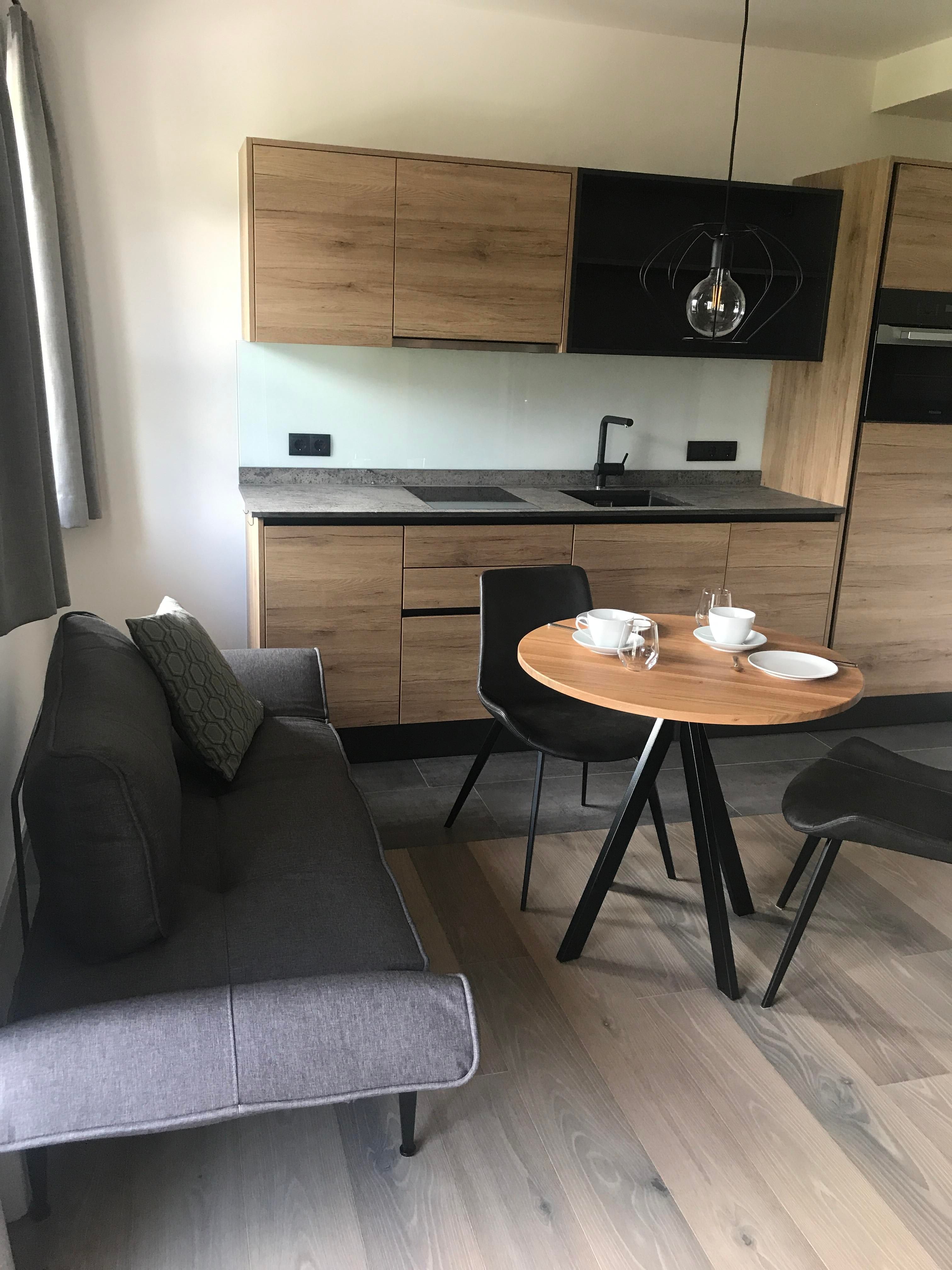Wir kombinieren hochwertige moderne Ausstattung mit ländlichem Charme. Unsere Appartements von 29m² bis 51m² verfügen jeweils über einen Schlafraum, einen separaten Wohnraum mit vollausgestatteter Küche, ein geräumiges Bad und einen großzügigen Balkon mit Sitzmöglichkeit.