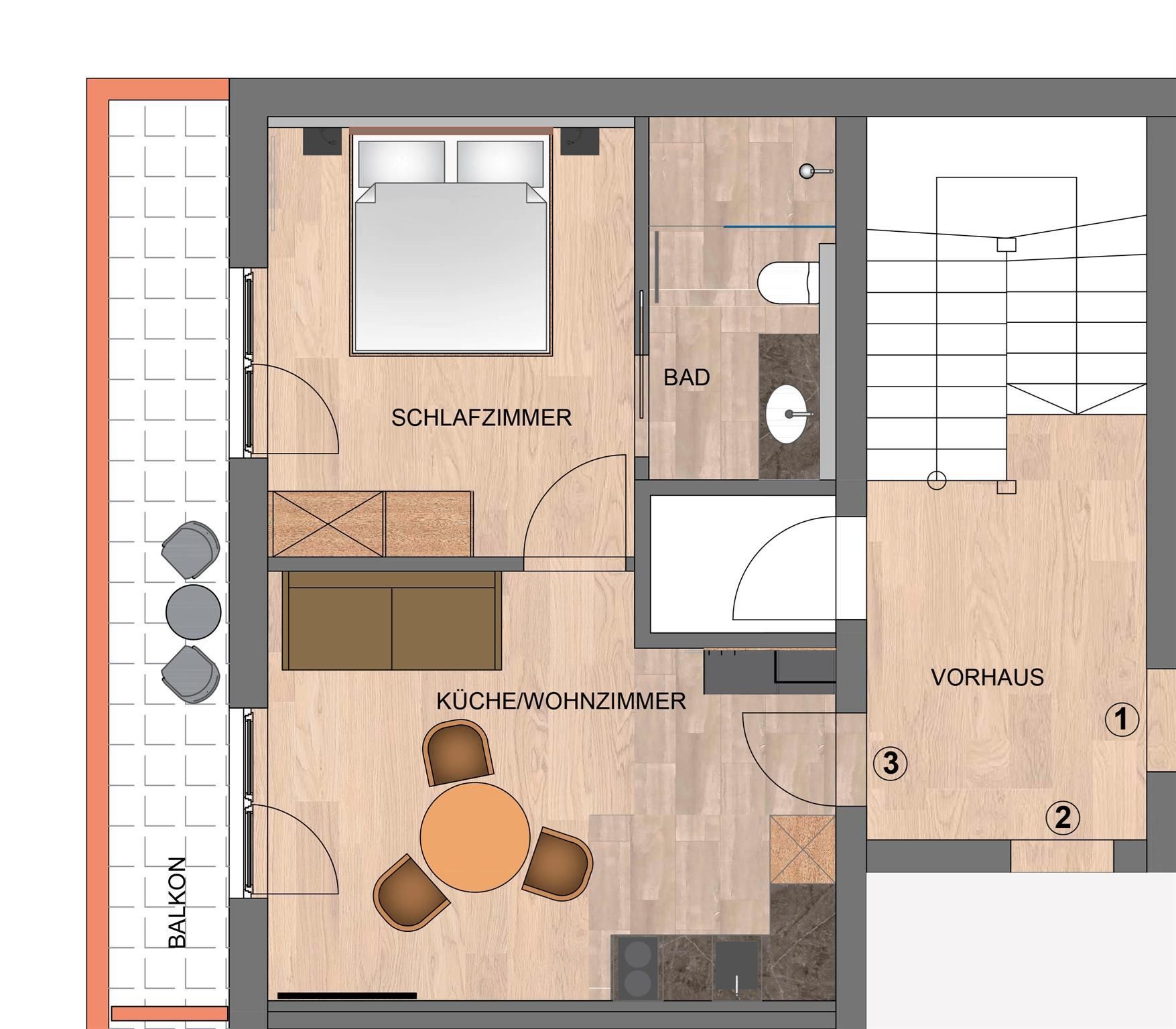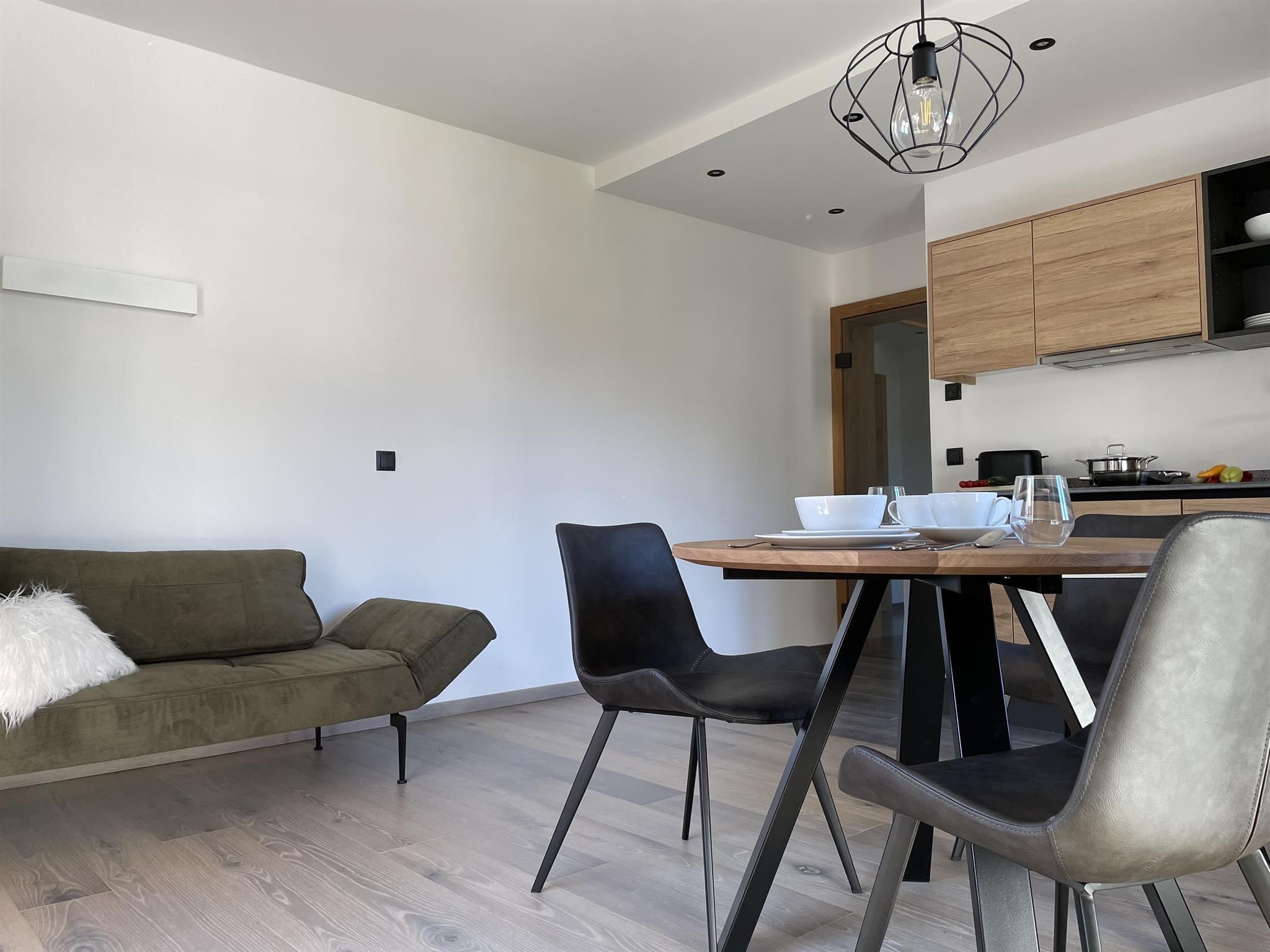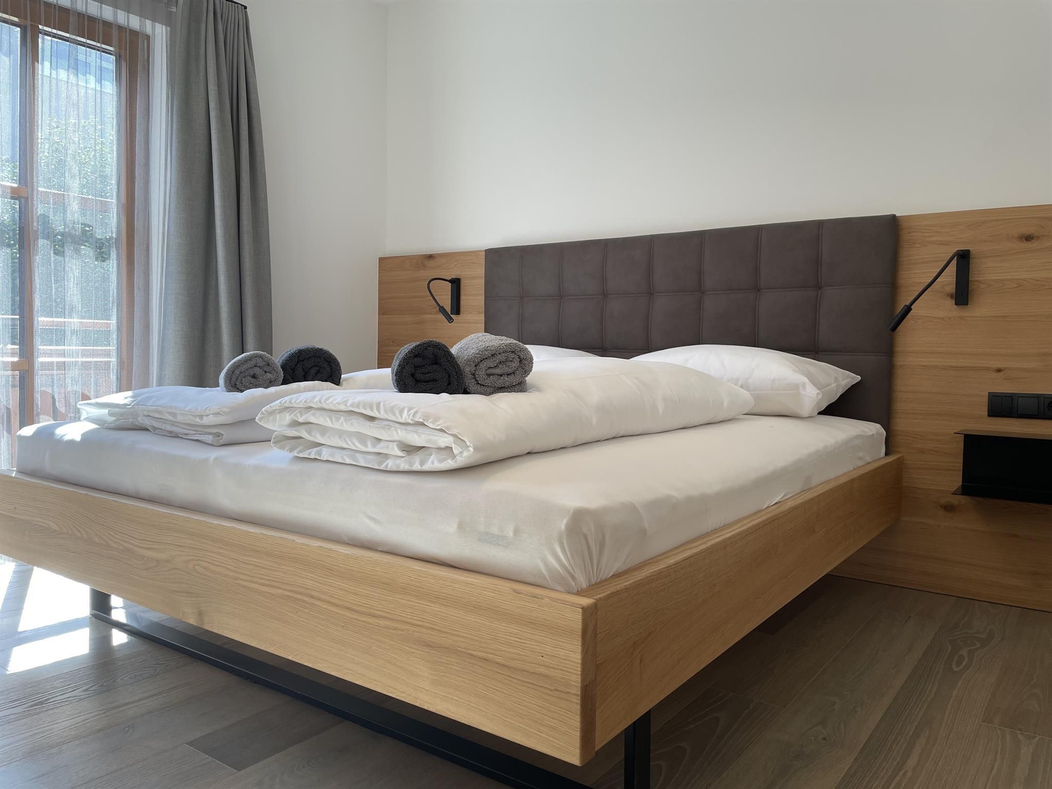 Wir kombinieren hochwertige moderne Ausstattung mit ländlichem Charme. Unsere Appartements von 29m² bis 51m² verfügen jeweils über einen Schlafraum, einen separaten Wohnraum mit vollausgestatteter Küche, ein geräumiges Bad und einen großzügigen Balkon mit Sitzmöglichkeit.