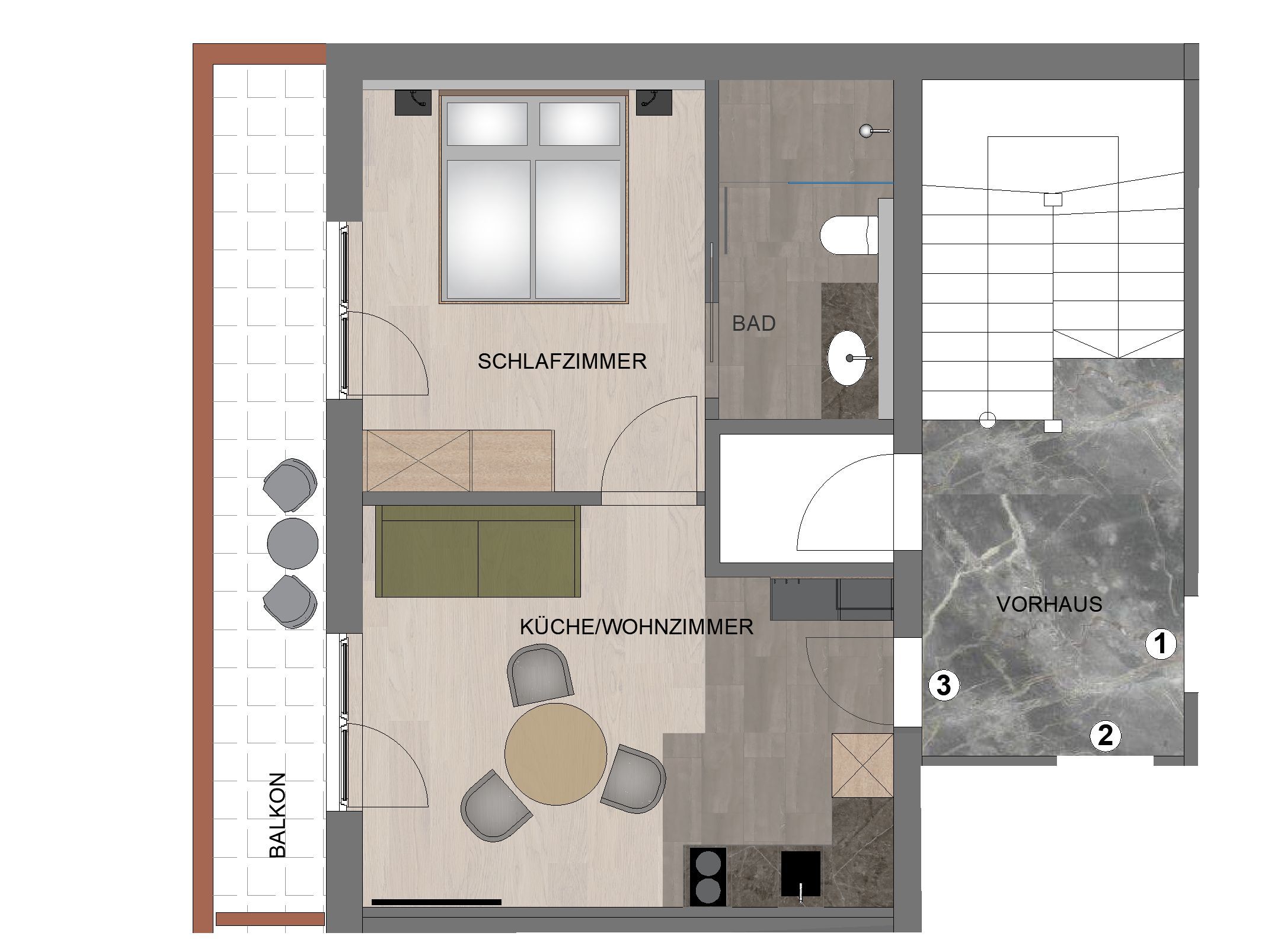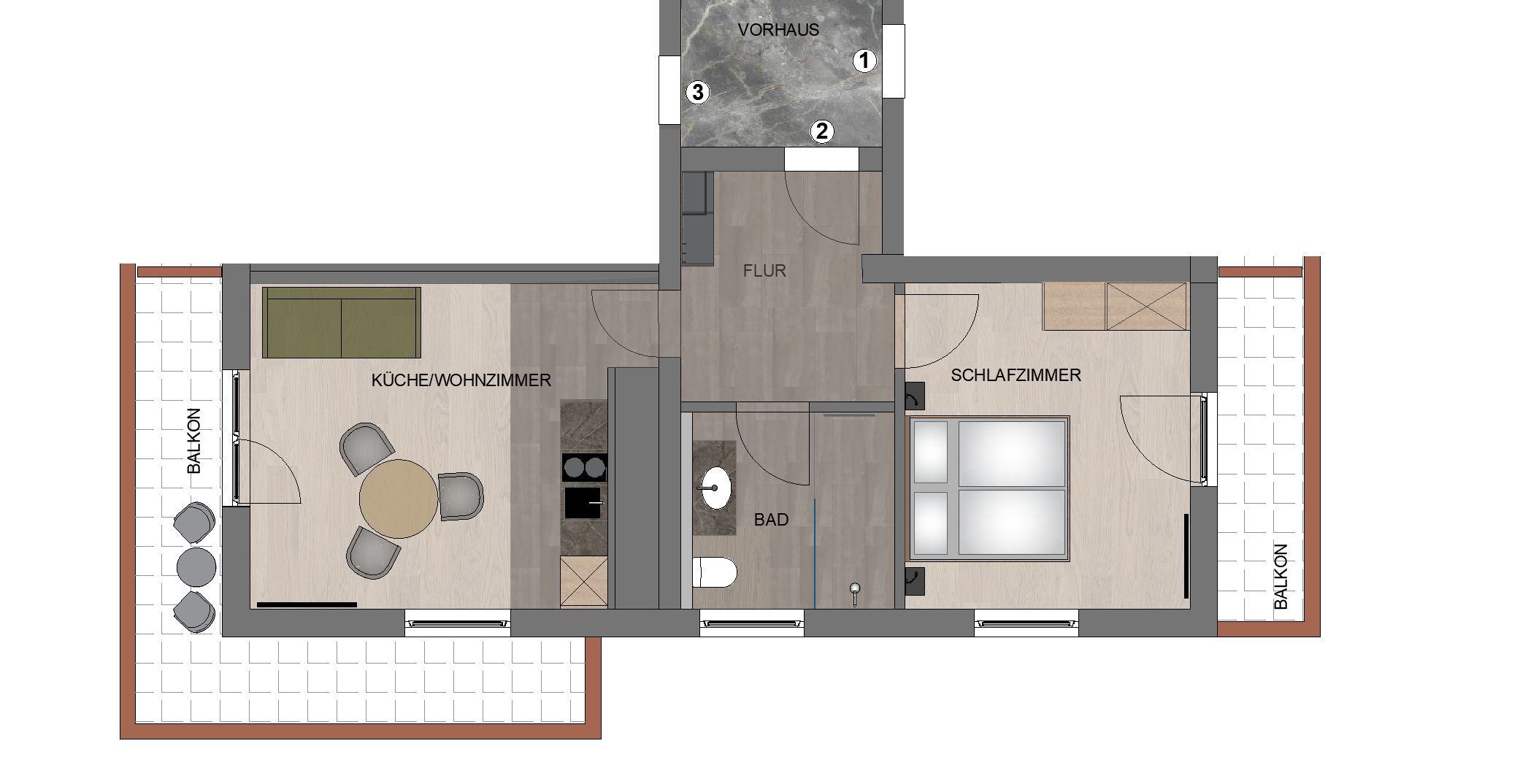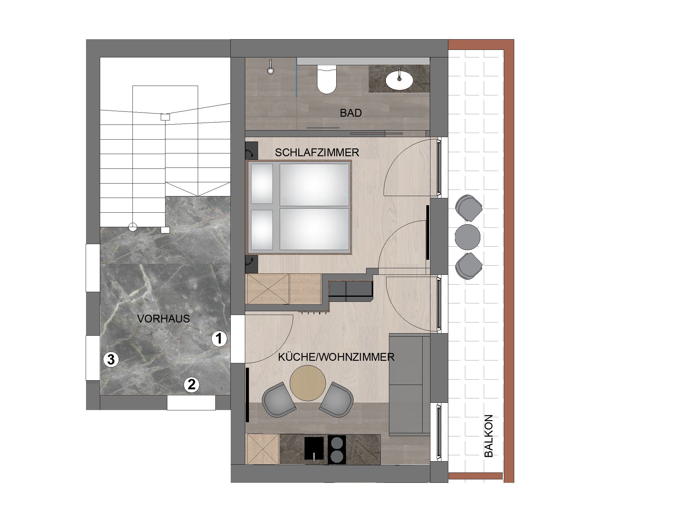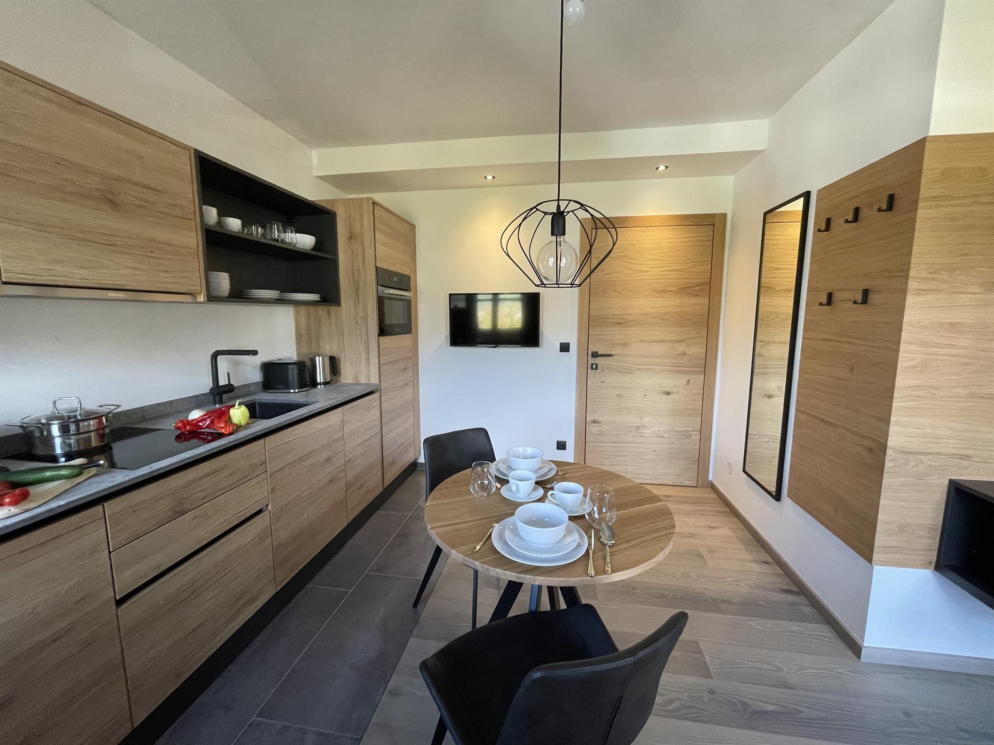 Wir kombinieren hochwertige moderne Ausstattung mit ländlichem Charme. Unsere Appartements von 29m² bis 51m² verfügen jeweils über einen Schlafraum, einen separaten Wohnraum mit vollausgestatteter Küche, ein geräumiges Bad und einen großzügigen Balkon mit Sitzmöglichkeit.