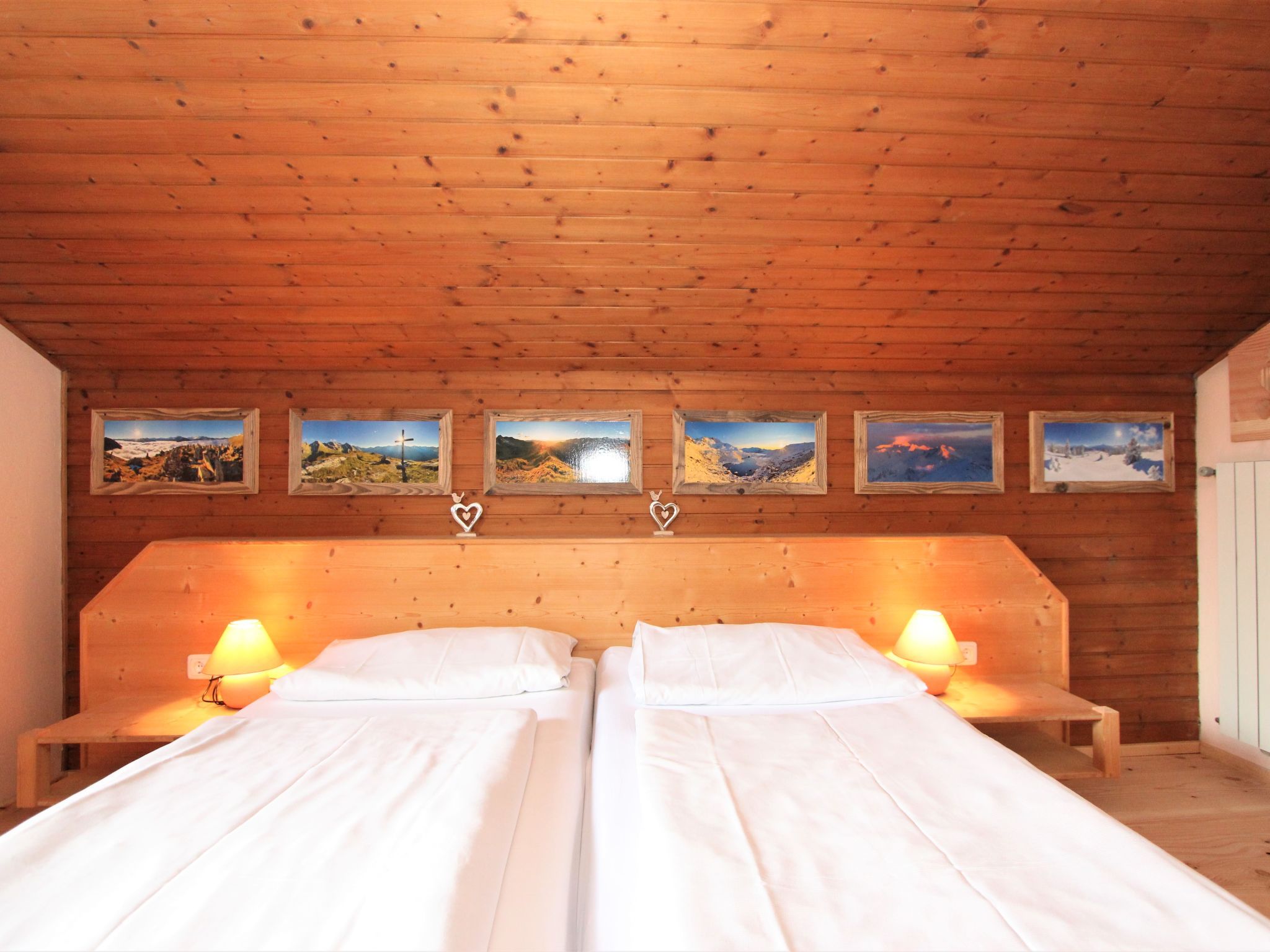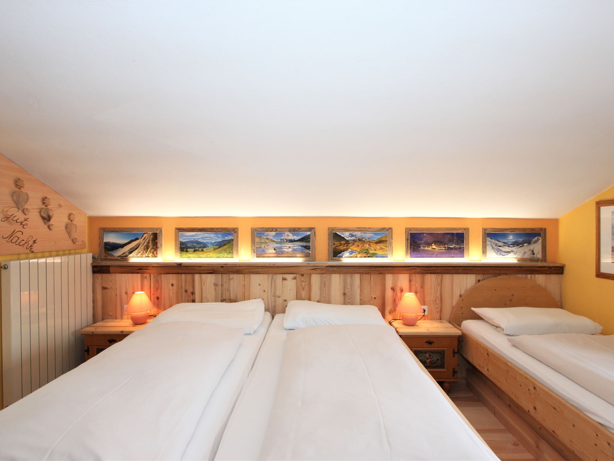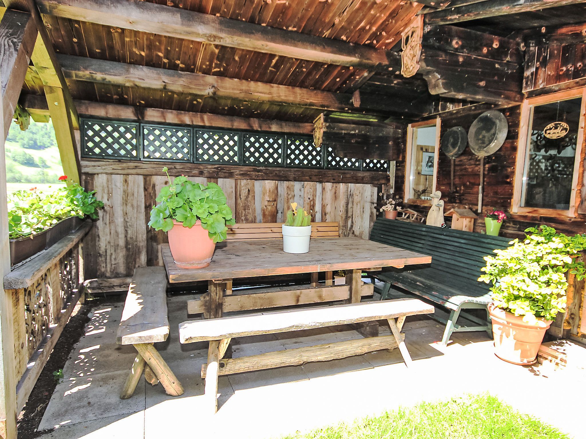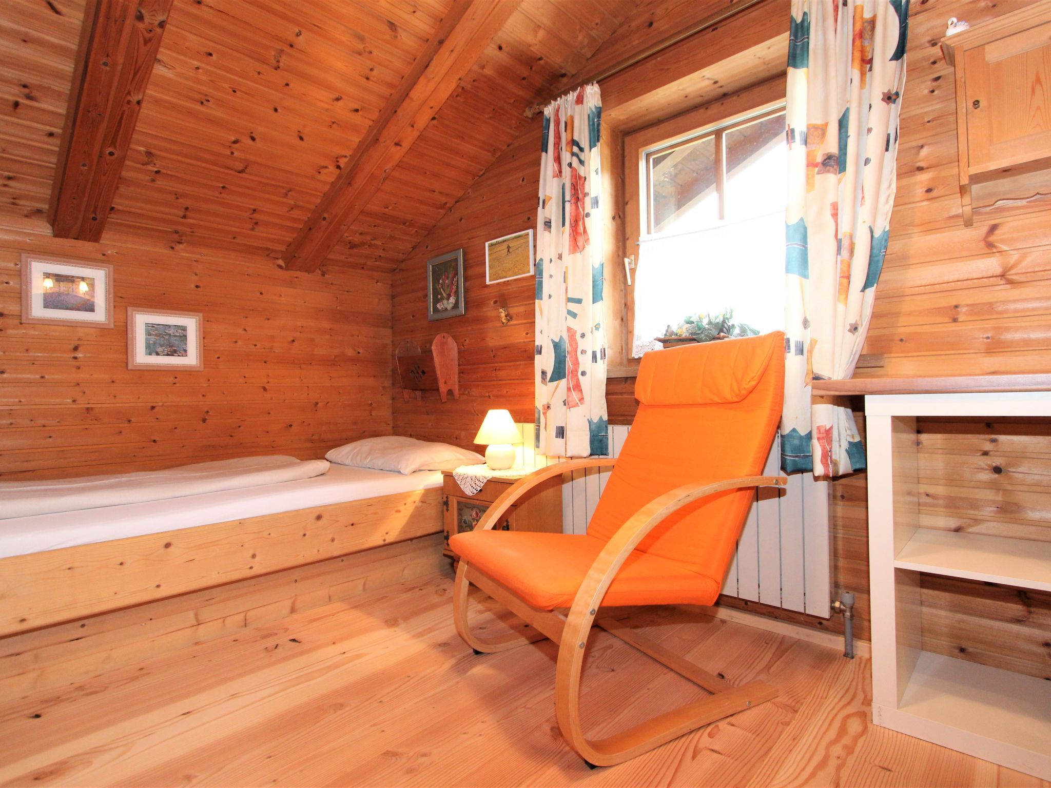 5-Zimmer-Wohnung 160 m2 auf 2 Stockwerken. Rustikal und gemütlich eingerichtet: Eingang. Grosses Wohn-/Esszimmer mit Panoramafenster mit Esstisch und Sat-TV (Flachbildschirm), Radio. Ausgang zum Balkon. 1 Zimmer mit 1 Bett und 1 Doppelbett. Küche (3 Kochplatten, Backofen, Geschirrspüler, Mikrowelle, Tiefkühler) mit Essecke und Radio. Bad, sep. WC. Dachgeschoss: Eingang. 1 Zimmer mit 1 Bett, 1 Doppelbett und Waschbecken. Ausgang zur Terrasse. 1 Zimmer mit 1 Bett und Waschbecken. 1 Doppelzimmer mit Waschbecken. Ausgang zur Terrasse. Dusche/WC. Balkon, grosse Terrasse 50 m2. Terrassenmöbel, Gartengrill. Sehr schöne Sicht auf die Berge und die Landschaft. Zur Verfügung: Internet (Wireless LAN, gratis). Bitte beachten: Nichtraucher-Unterkunft. Wichtig: Die Wohnung darf maximal mit 8 Personen belegt werden (inkusive Kinderbett).