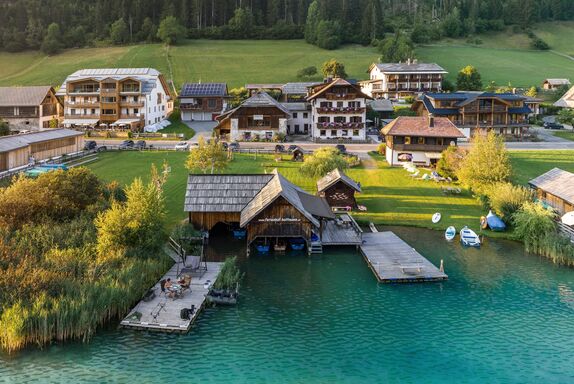 Ankommen und entspannen: Wir legen Wert auf Ihr Wohlbefinden. Daher haben wir unsere Ferienwohnungen und Zimmer mit Liebe zum Detail eingerichtet. Komfort und Wohlfühlatmosphäre ergänzen sich bei uns wunderbar – schließlich soll es Ihnen im Urlaub an nichts fehlen. Die Lage unserer Unterkunft ist einladend: Mitten im Naturpark Weißensee direkt am See, ein wenig abseits des Trubels und dennoch alle Aktivitäten in Gehweite.