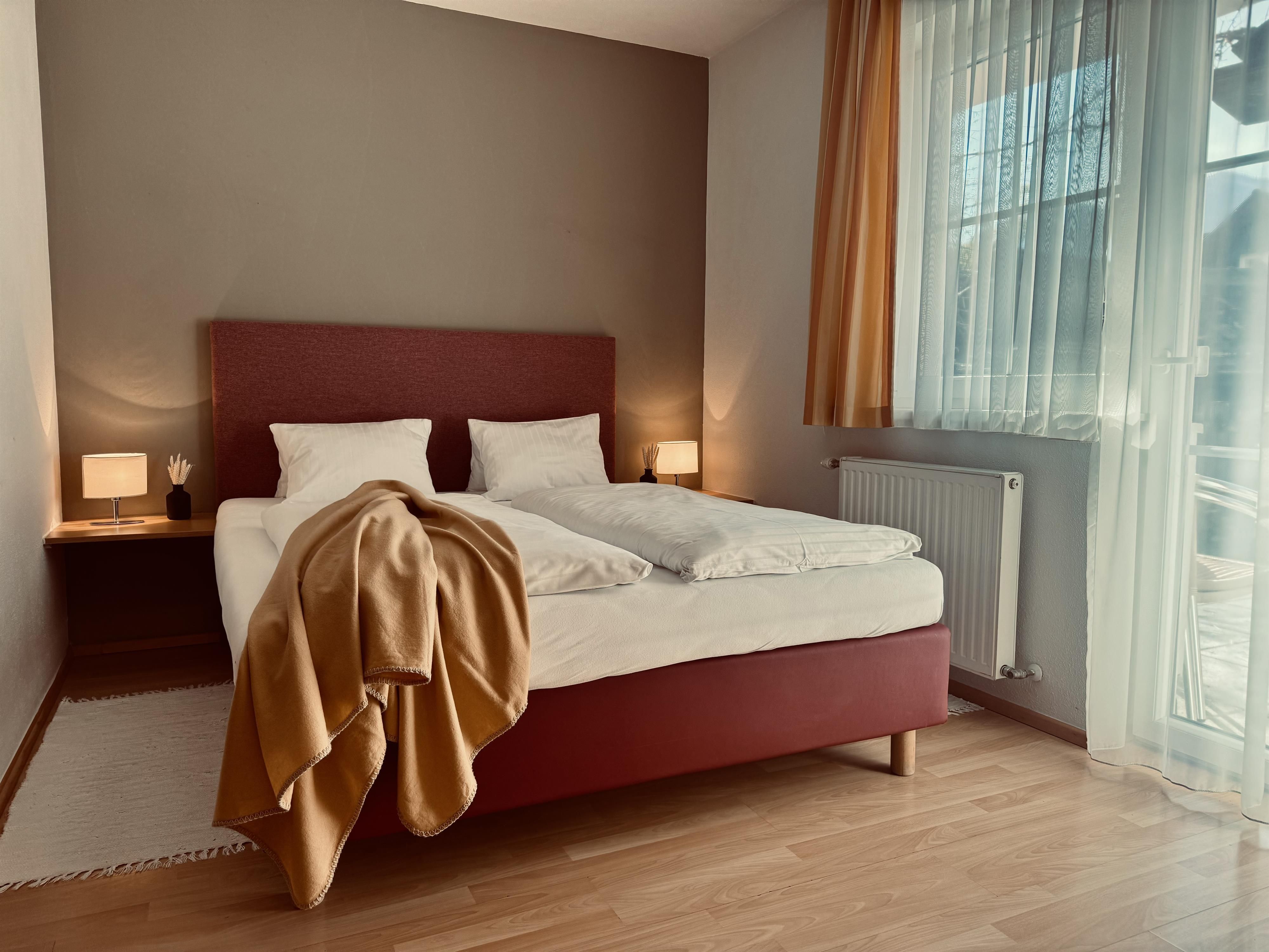 Unser Comfort Apartment verfügt über 1 Schlafzimmer, 1 Wohnschlafraum, eine voll ausgestattete Küche und Bad mit separatem WC, Terrasse, gratis W-Lan.