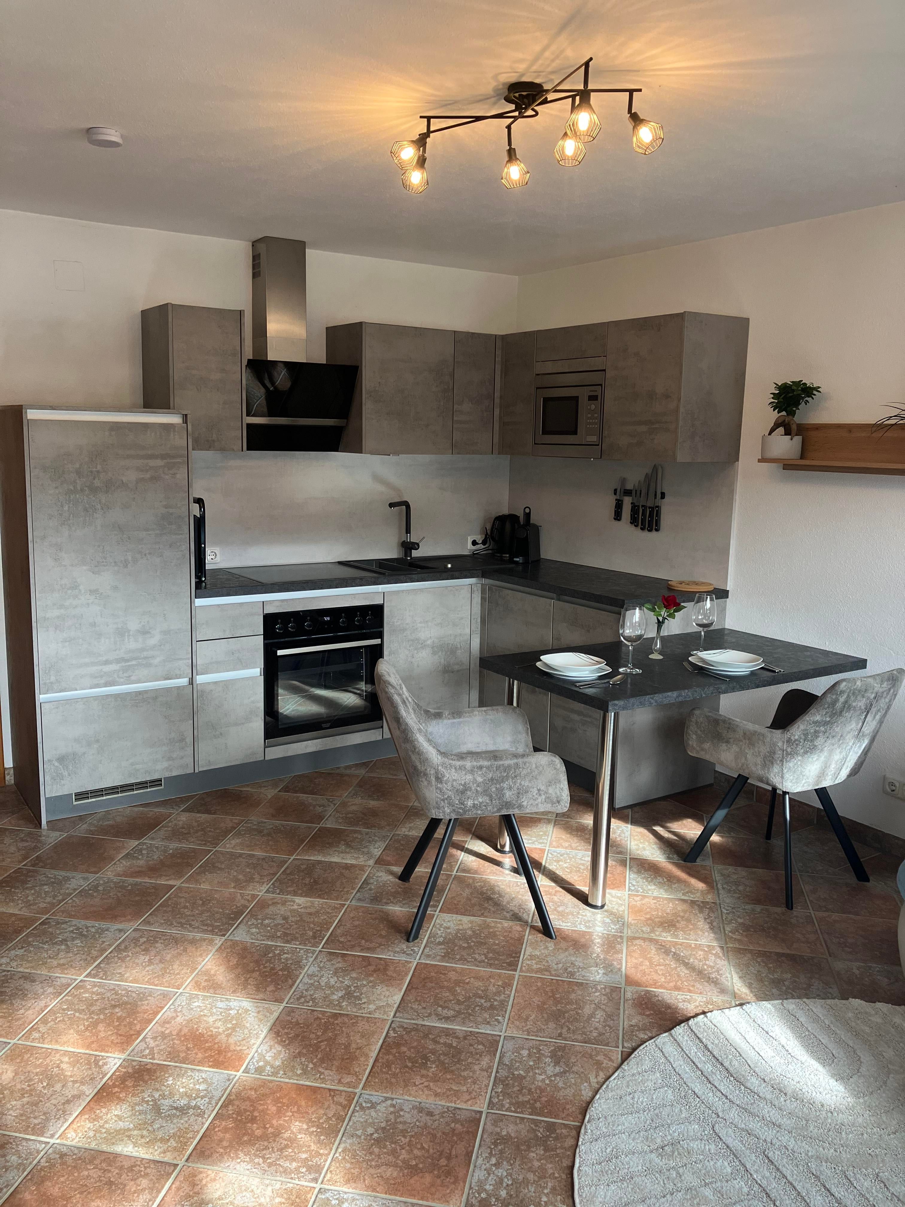 Die elegante Ferienwohnung für 2 Personen bietet eine private Infrarotsauna, modern ausgestattete Wohnküche und einen sonnigen Garten.