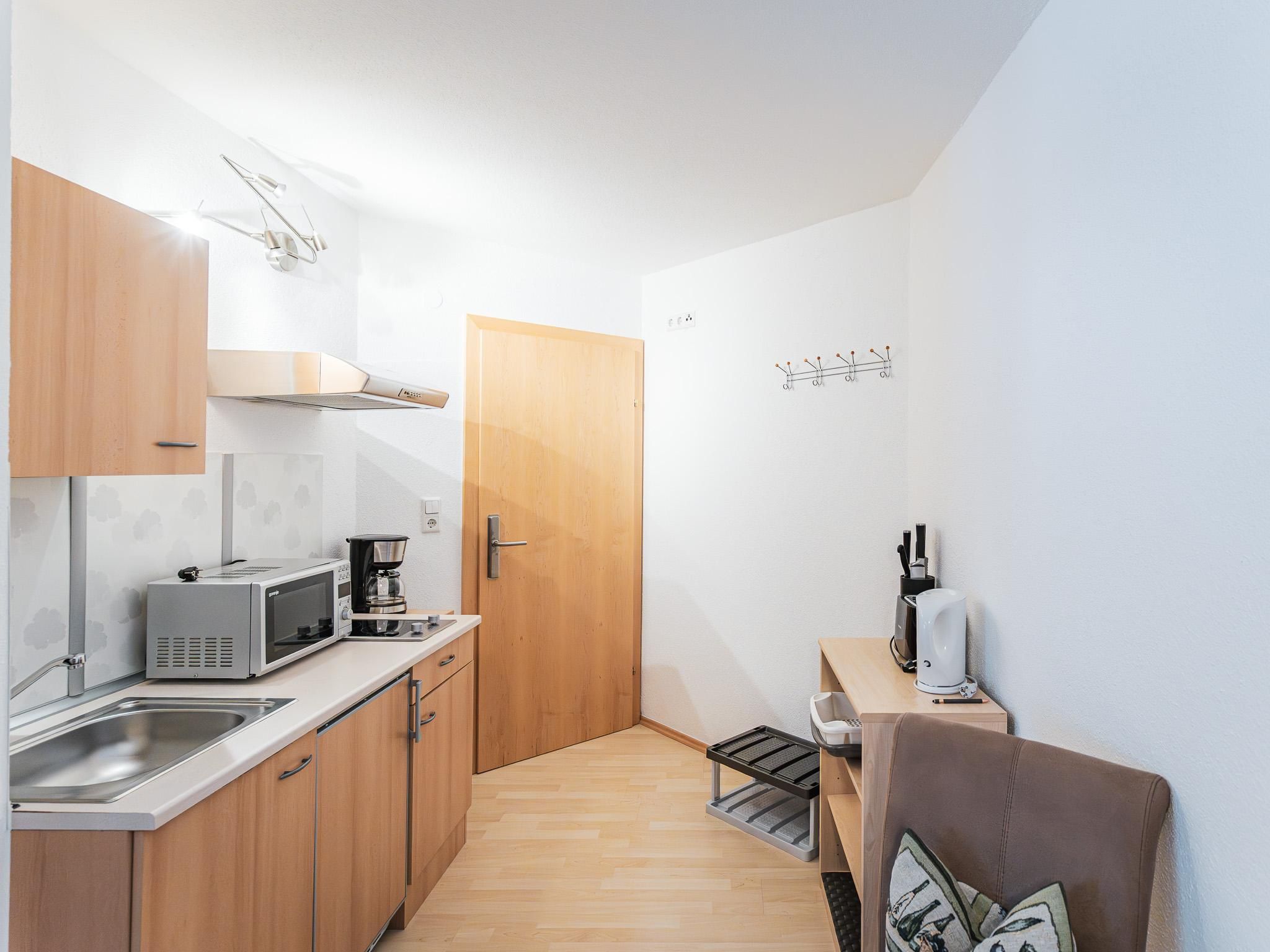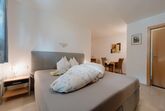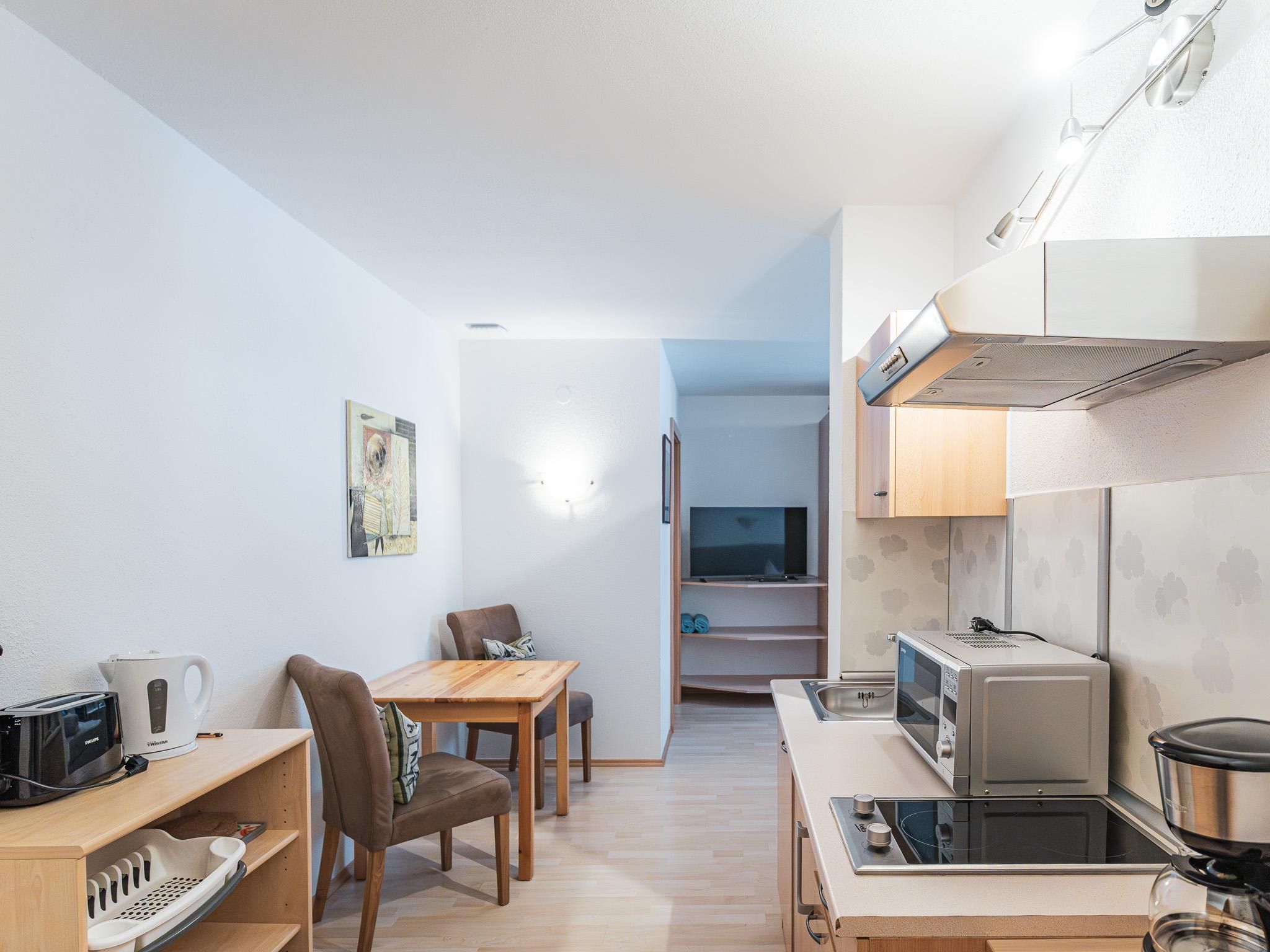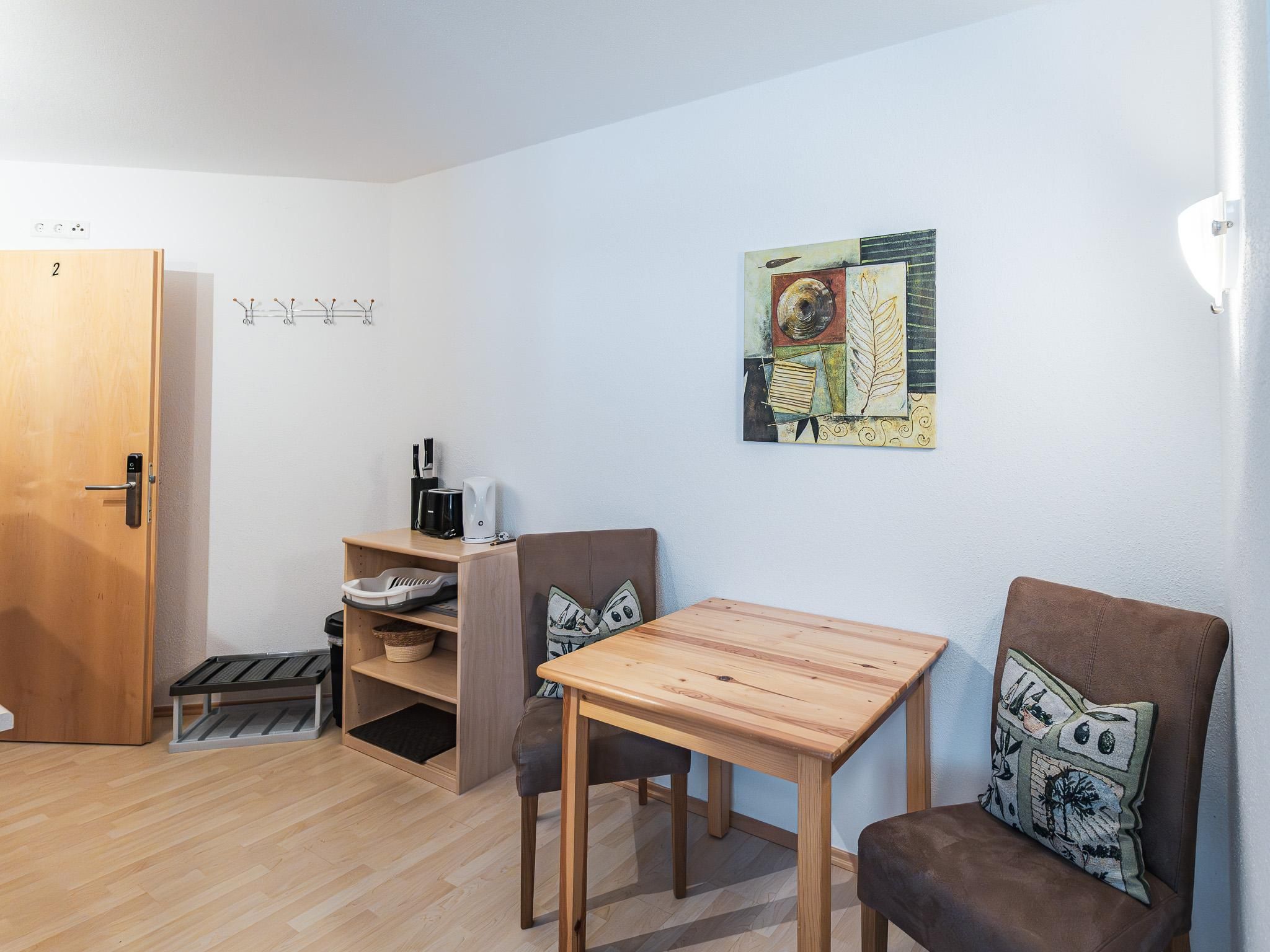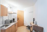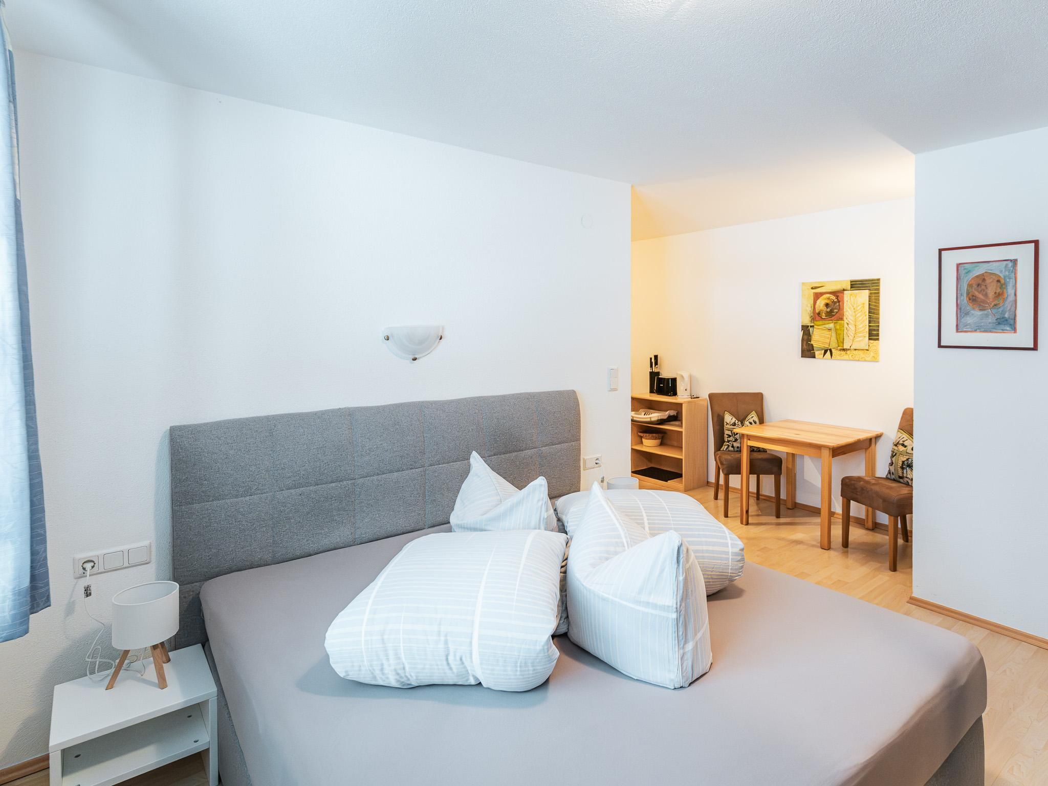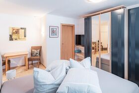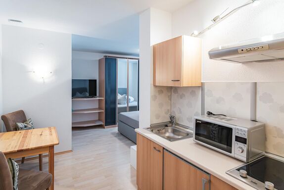 Das gemütliche Studio (ca. 23 m²) verfügt über folgende Ausstattung: ein Doppelbett (Boxspringbett), eine kleine Küchenzeile (Kühl-/Gefrierschrank, Kaffeemaschine, Mikrowelle, Wasserkocher, Cerankochfeld mit 2 Kochplatten u.v.m.) mit Sitzgelegenheit und Flat-TV sowie ein Badezimmer mit Dusche/WC.