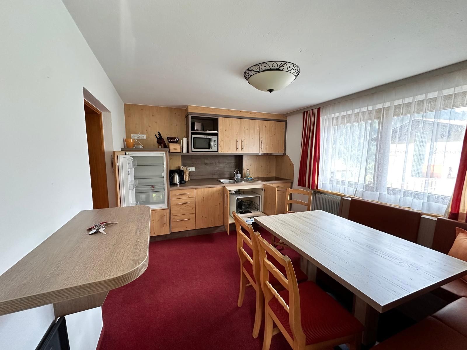 Appartement Nederkogel mit ca. 45 m² und einem eigenen Zugang, Balkon nach Osten und einer kleinen Terrasse nach Südwesten, geräumige, voll ausgestattete Küche mit gemütlicher Sitzecke (Nespressomaschine, Geschirrspüler, Mikrowelle, Toaster, Kühlschrank mit Gefrierfach uvm.), Wohn-/Schlafzimmer mit TV und Schlafsofa für 2 Personen, 1 Schlafzimmer mit Doppelbett und TV, einen Vorraum mit Garderobe sowie ein Badezimmer mit Dusche und WC.